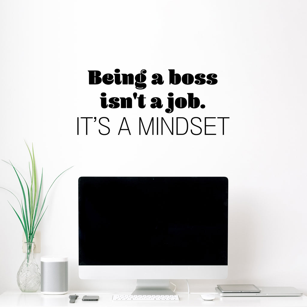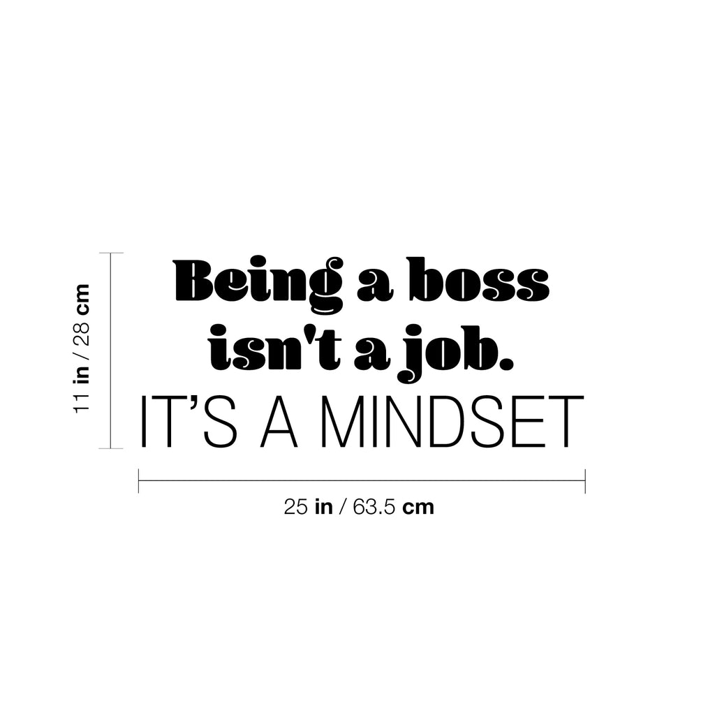 This optimistic decal quote "Being A Boss Isn't A Job. It's A Mindset"; is the perfect touch for your school or office. Use it for your living room; classroom; playroom or anywhere you want to bring some extra positive decoration. It's a vinyl sticker that is easy to put on any smooth and dry surface. Our modern designs don't just brighten up the room; but brighten up the day. Using top of the line vinyl across all of our production allows us to be the leaders in quality and design.
