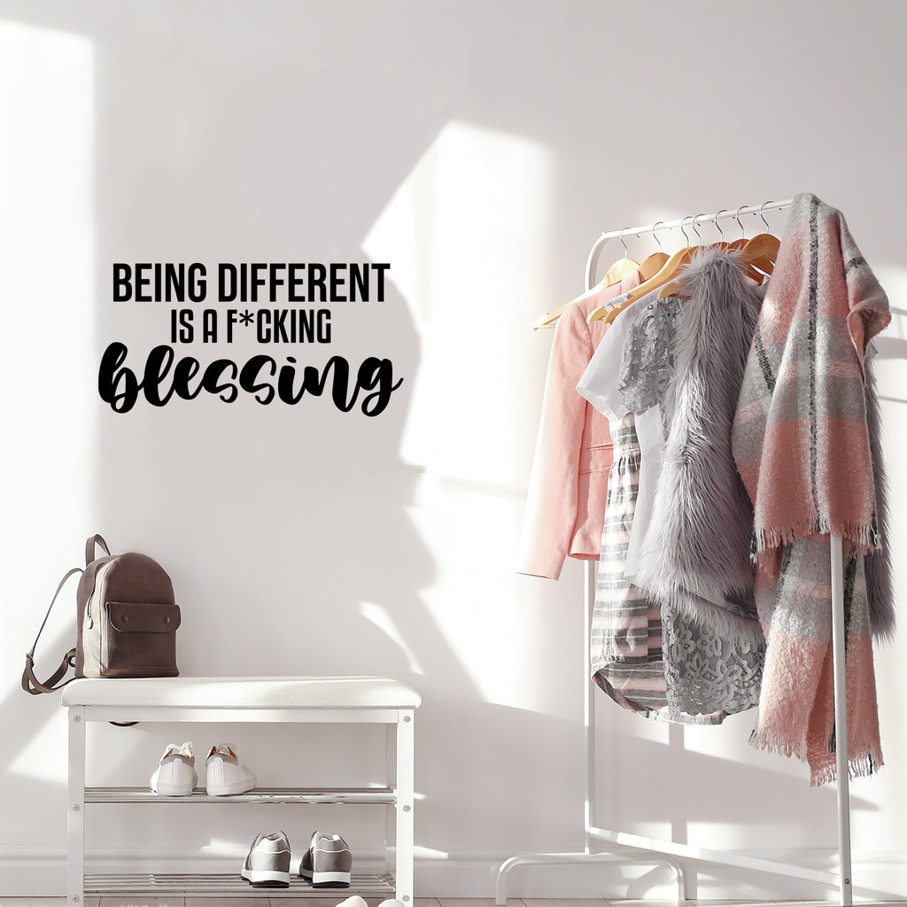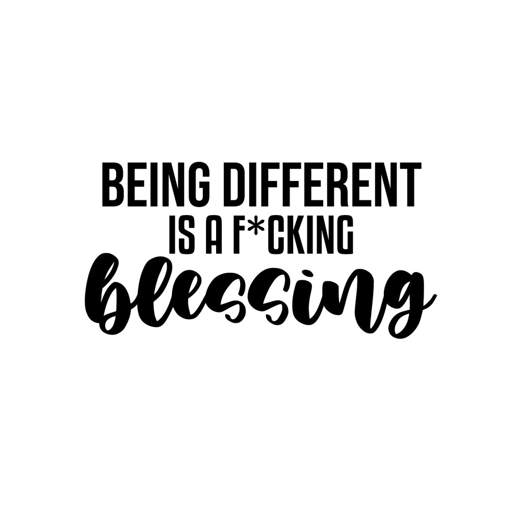 This awesome funny & sarcastic decal quote "Being Different Is A F*cking Blessing"; is the perfect touch for your home or office. Use it for your business; coffee shop; bathroom or anywhere you want to bring some extra inspirational decoration. It's a vinyl sticker that is easy to put on any smooth and dry surface. Our modern designs don't just brighten up the room; but brighten up the day. Using top of the line vinyl across all of our production allows us to be the leaders in quality and design.