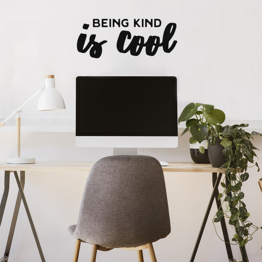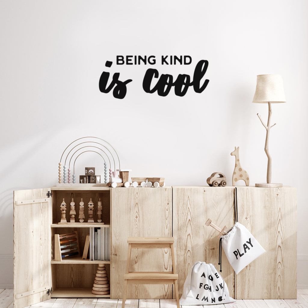 This decal quote "Being Kind Is Cool" is the perfect touch for your home. Use it for your nursery; playroom; kids room or anywhere you want to bring some extra cute decoration. It's a vinyl sticker that is easy to put on any smooth and dry surface. Our modern designs don't just brighten up the room; but brighten up the day. Using top of the line vinyl across all of our production allows us to be the leaders in quality and design.
