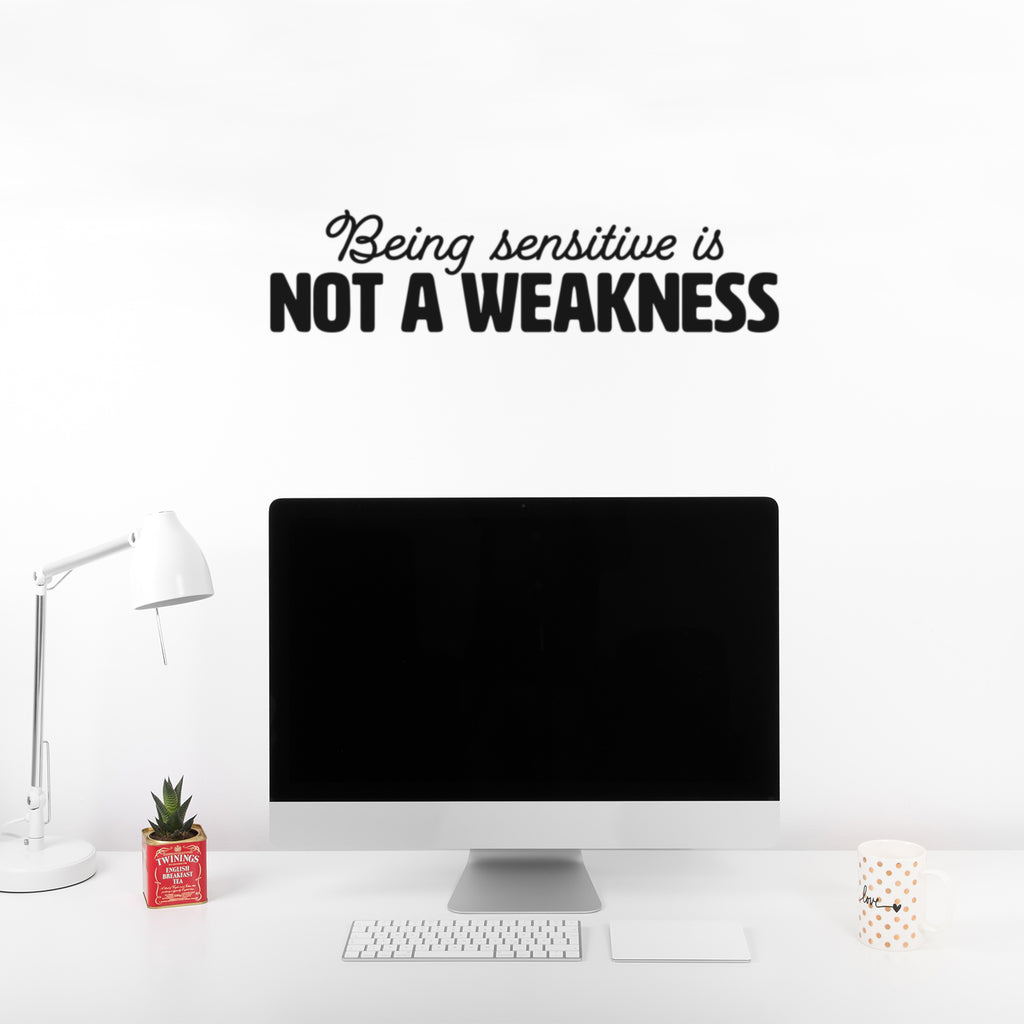 This awesome positive decal quote "Being Sensitive Is Not A Weakness"; is the perfect touch for your home or office. Use it for your store; coffee shop; work or anywhere you want to bring some extra inspiring decoration. It's a vinyl sticker that is easy to put on any smooth and dry surface. Our modern designs don't just brighten up the room; but brighten up the day. Using top of the line vinyl across all of our production allows us to be the leaders in quality and design.
