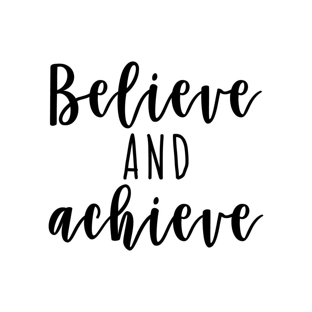 This awesome motivational decal quote "Believe And Achieve"; is the perfect touch for your home or work. Use it for your dorm room; living room or anywhere you want to bring some extra girly decoration. It's a vinyl sticker that is easy to put on any smooth and dry surface. Our modern designs don't just brighten up the room; but brighten up the day. Using top of the line vinyl across all of our production allows us to be the leaders in quality and design.