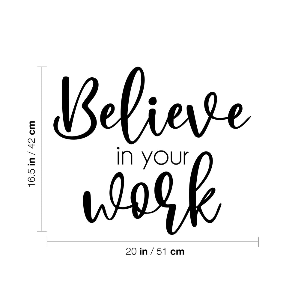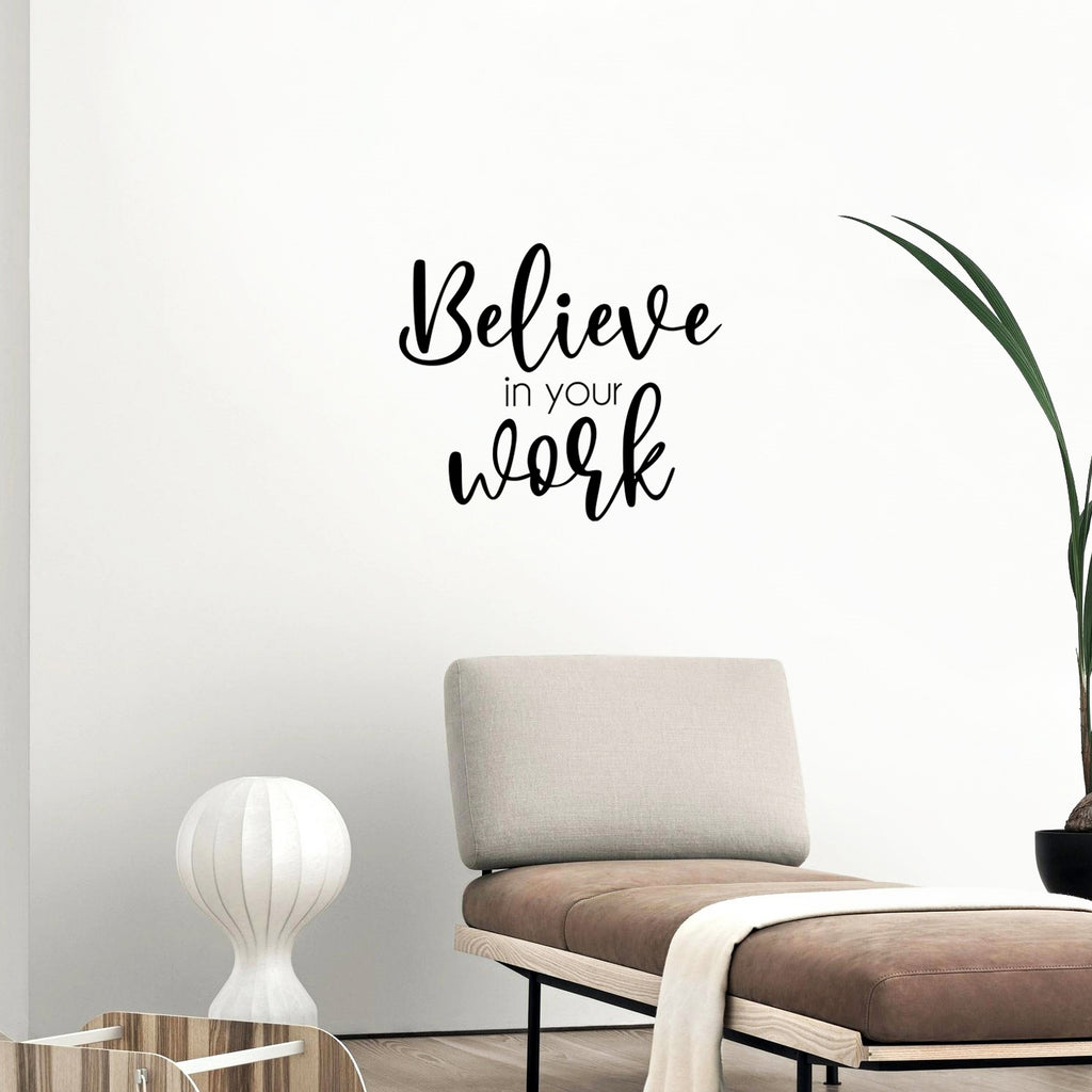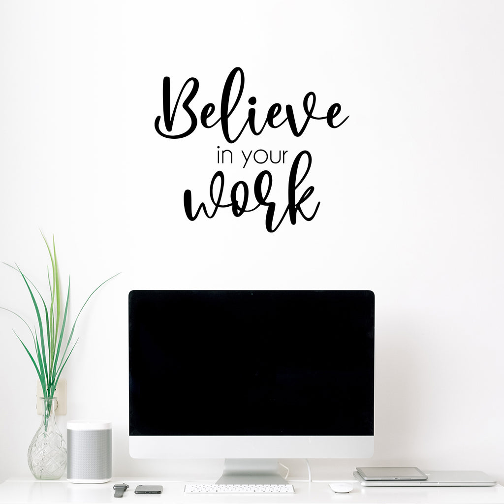 This great decal quote "Believe In Your Work"; is the perfect touch for your home. Use it for your makeup area; dorm room or anywhere you want to bring some extra decoration. It's a vinyl sticker that is easy to put on any smooth and dry surface. Our modern designs don't just brighten up the room; but brighten up the day. Using top of the line vinyl across all of our production allows us to be the leaders in quality and design.