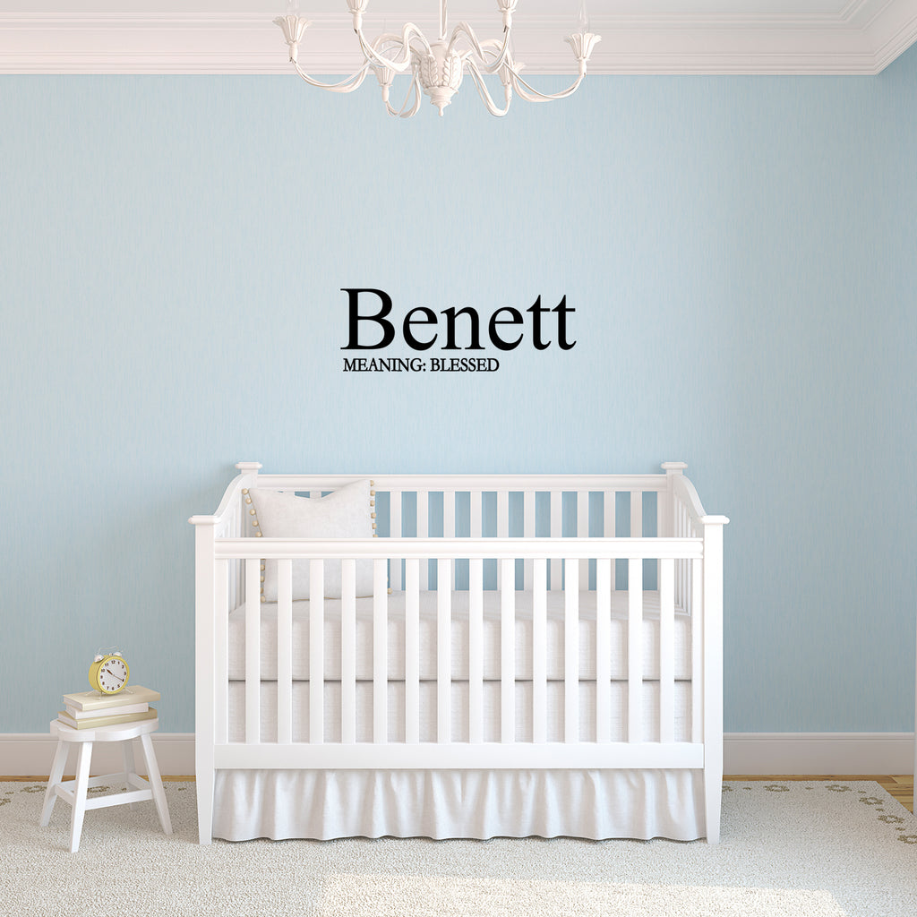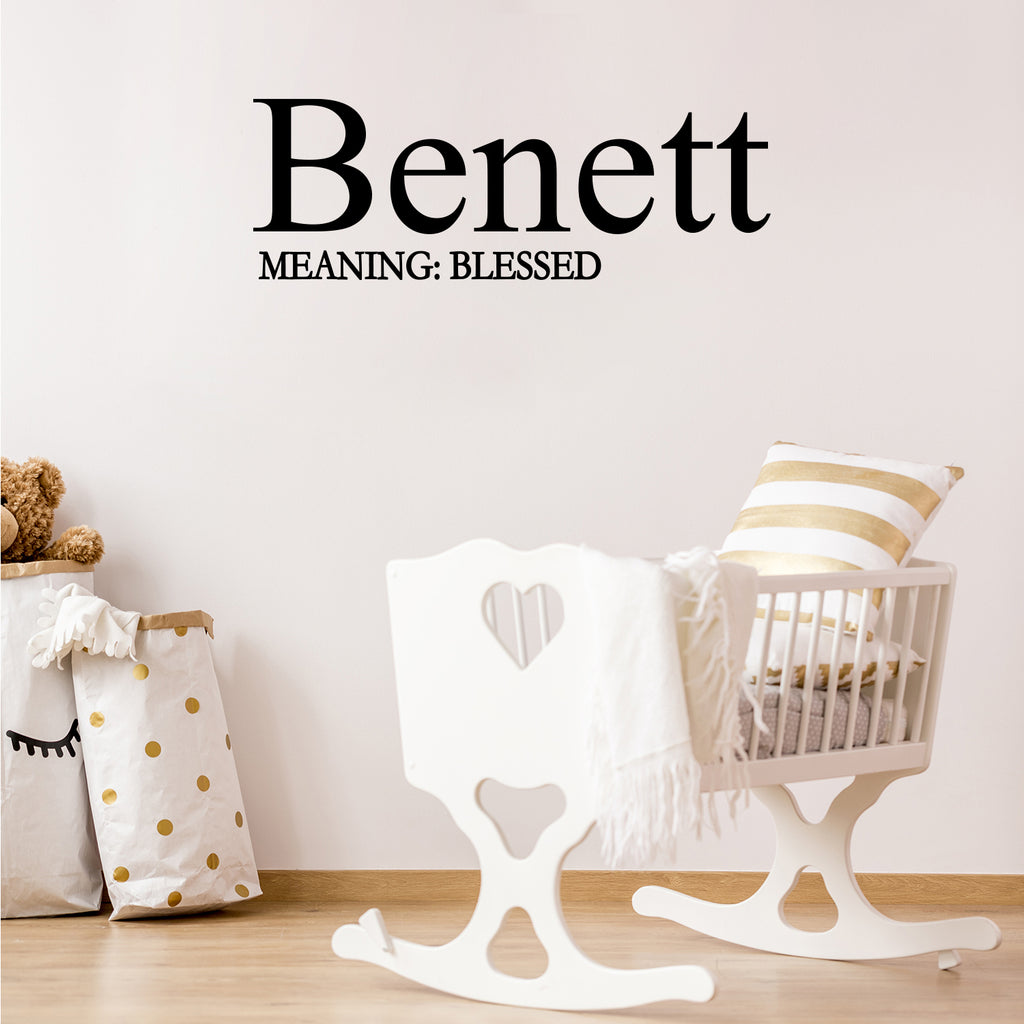 This great inspirational lovely decal quote "Benett. Blessed" is the perfect touch for your home. Use it for your nursery; playroom; kids room or anywhere you want to bring some extra cute decoration. It's a vinyl sticker that is easy to put on any smooth and dry surface. Our modern designs don't just brighten up the room; but brighten up the day. Using top of the line vinyl across all of our production allows us to be the leaders in quality and design.