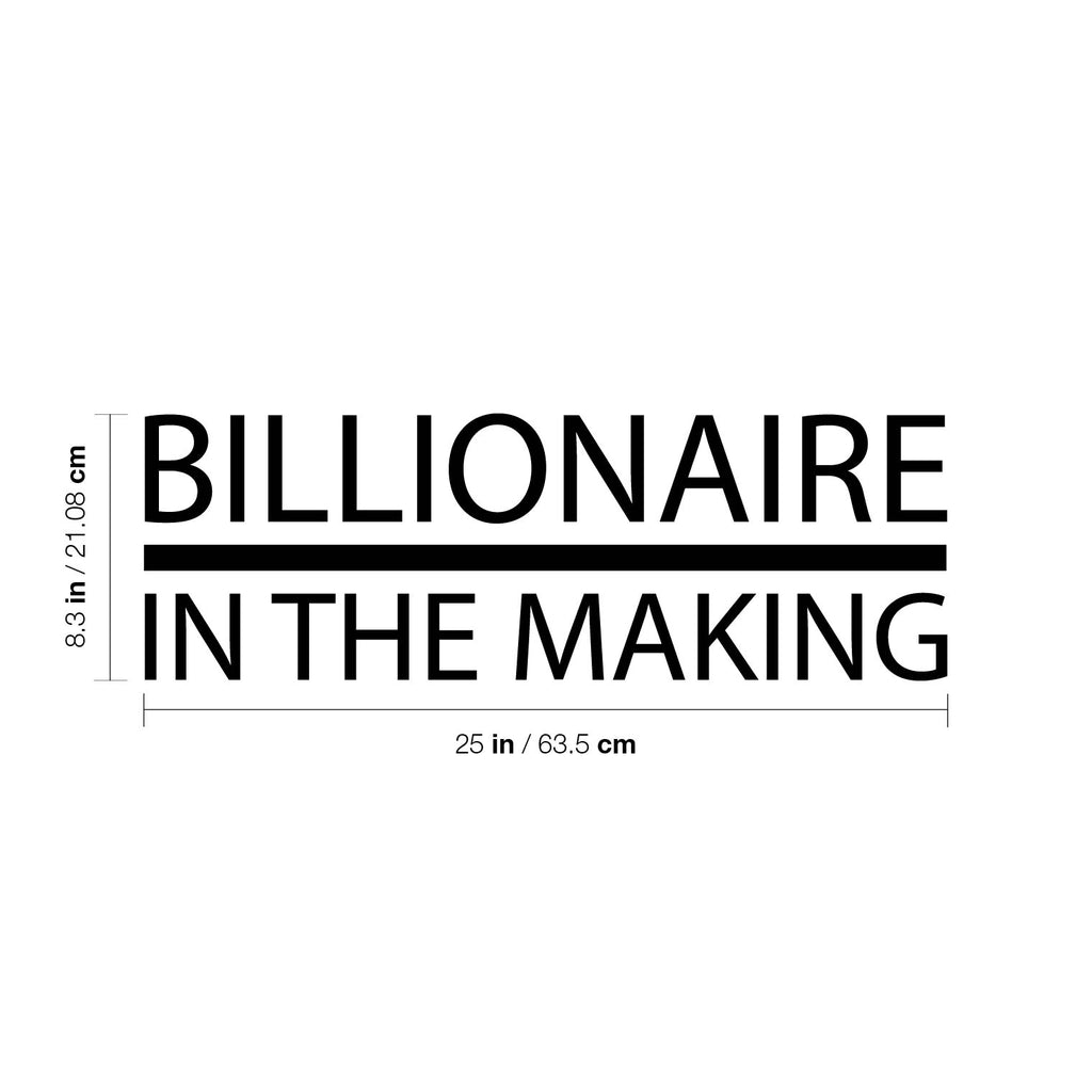This awesome motivational & positive decal quote "Billionaire In The Making"; is the perfect touch for your home or office. Use it for your living room; school; coffee shop or anywhere you want to bring some extra positive decoration. It's a vinyl sticker that is easy to put on any smooth and dry surface. Our modern designs don't just brighten up the room; but brighten up the day. Using top of the line vinyl across all of our production allows us to be the leaders in quality and design.