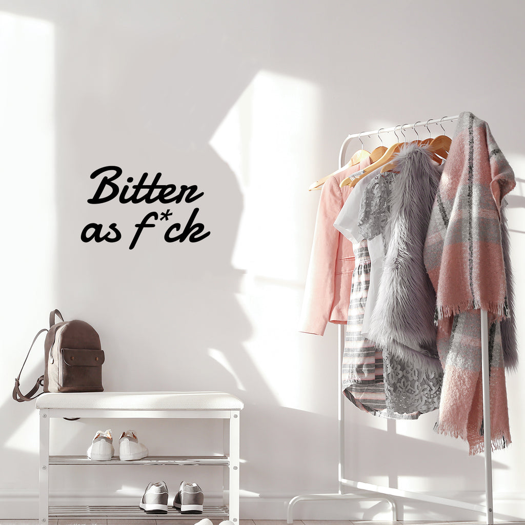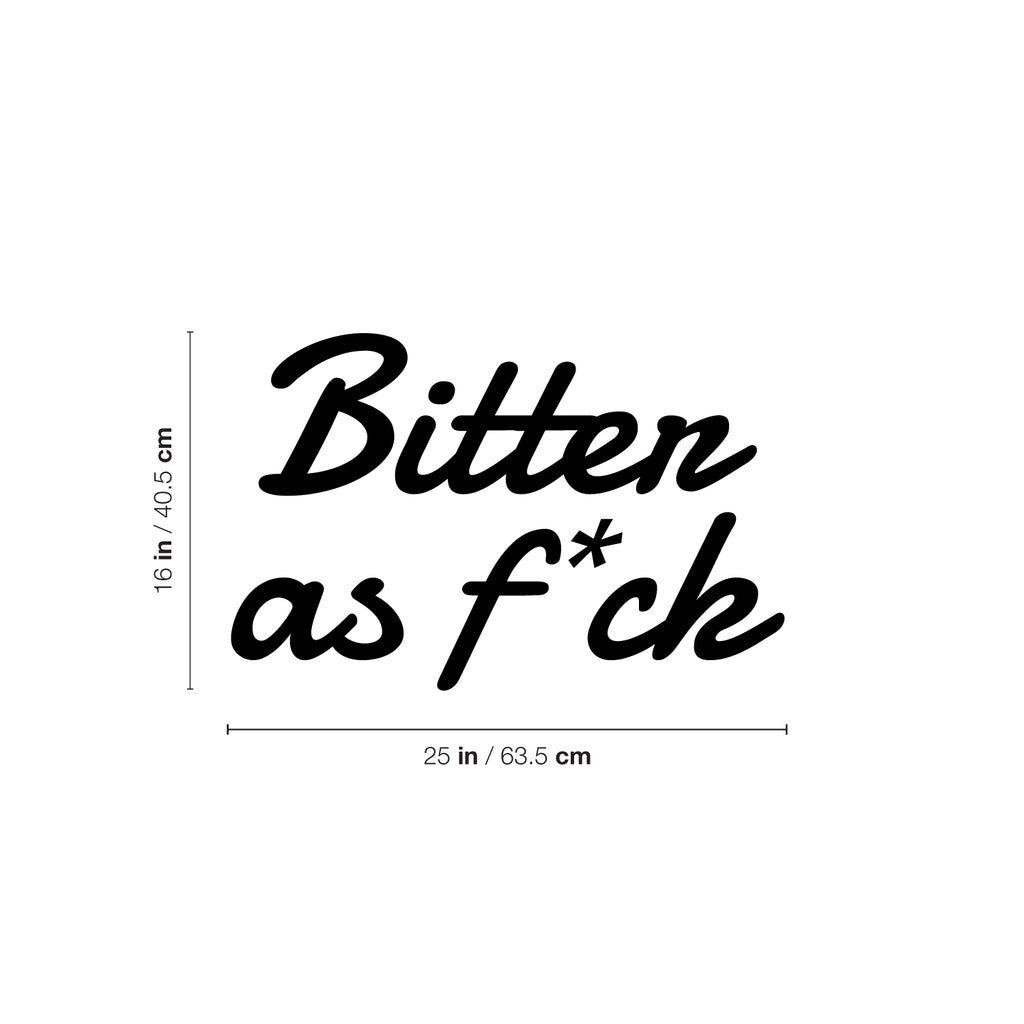This trendy funny decal quote "Bitter As F*ck"; is the perfect touch for your home or office. Use it for your living room; boutique; beauty saloon or anywhere you want to bring some extra positive decoration. It's a vinyl sticker that is easy to put on any smooth and dry surface. Our modern designs don't just brighten up the room; but brighten up the day. Using top of the line vinyl across all of our production allows us to be the leaders in quality and design.