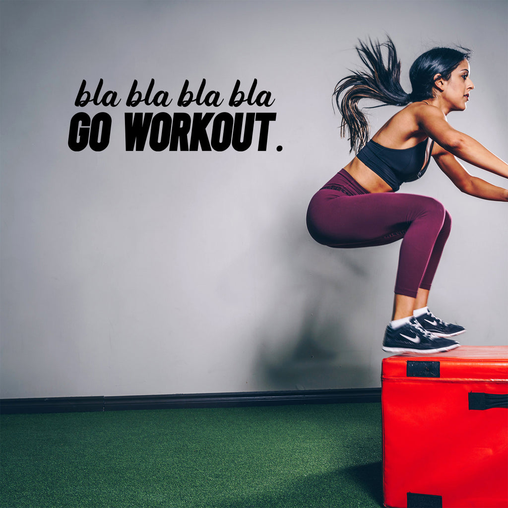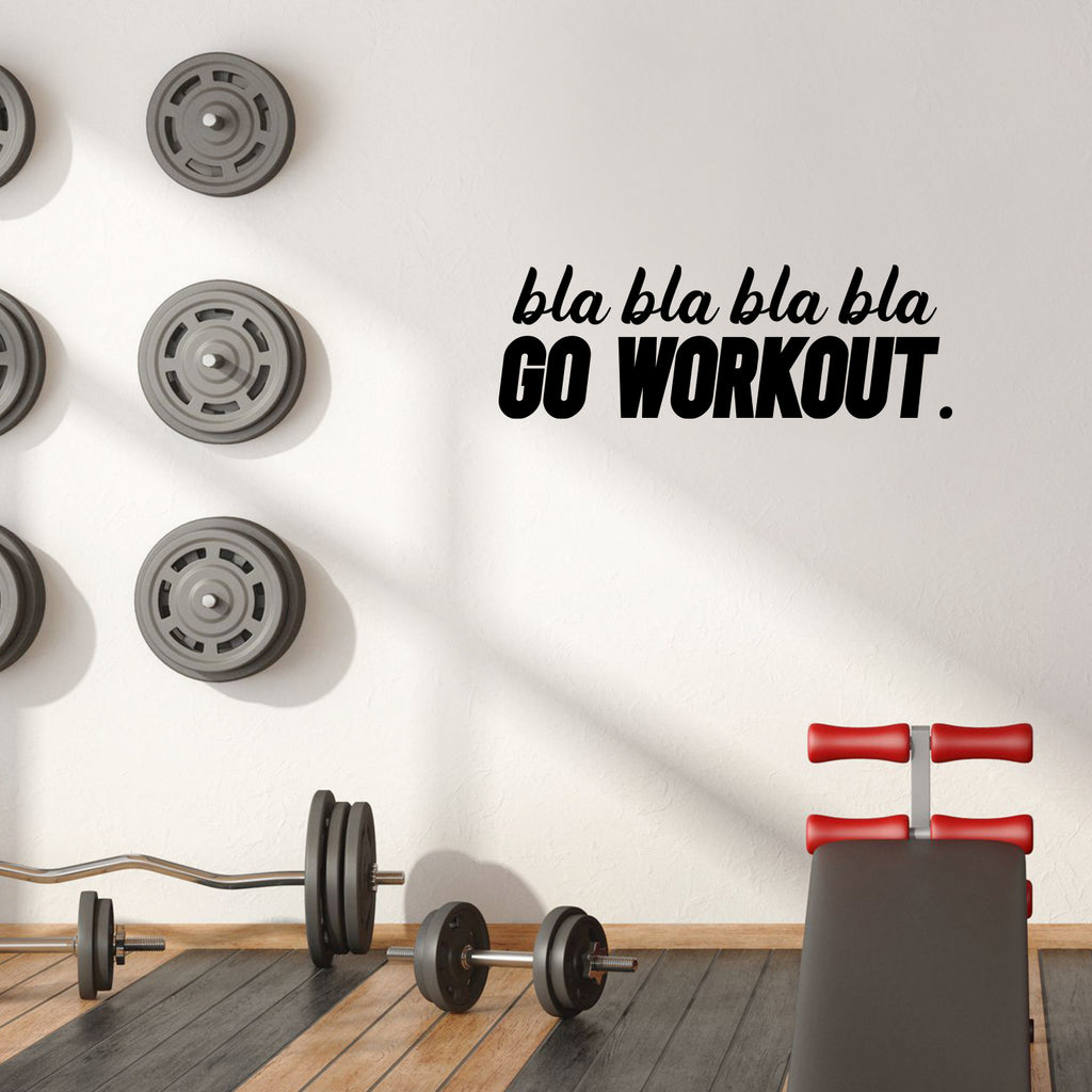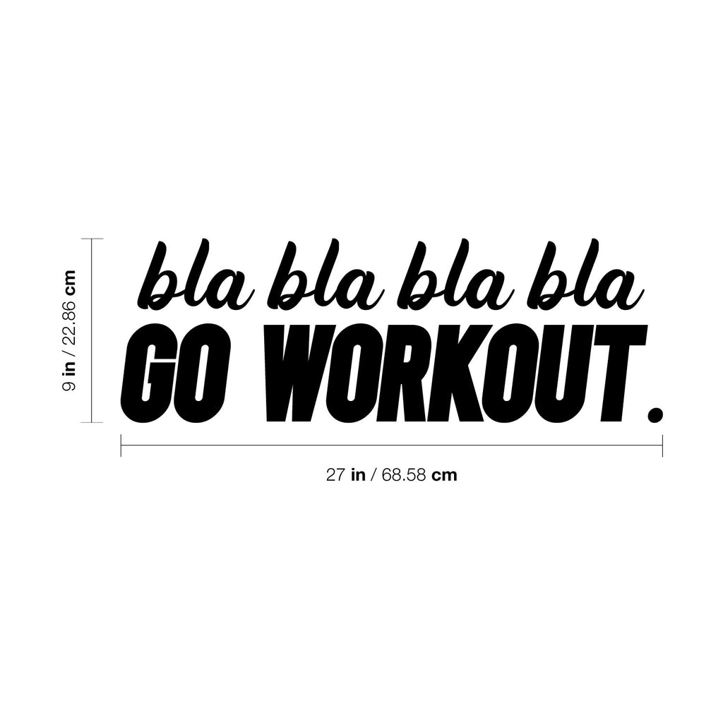 This decal quote "Bla Bla Bla Go Workout"; is the perfect touch for your home. Use it for your office or anywhere you want to bring some extra decoration. It's a vinyl sticker that is easy to put on any smooth and dry surface. Our modern designs don't just brighten up the room; but brighten up the day. Using top of the line vinyl across all of our production allows us to be the leaders in quality and design.