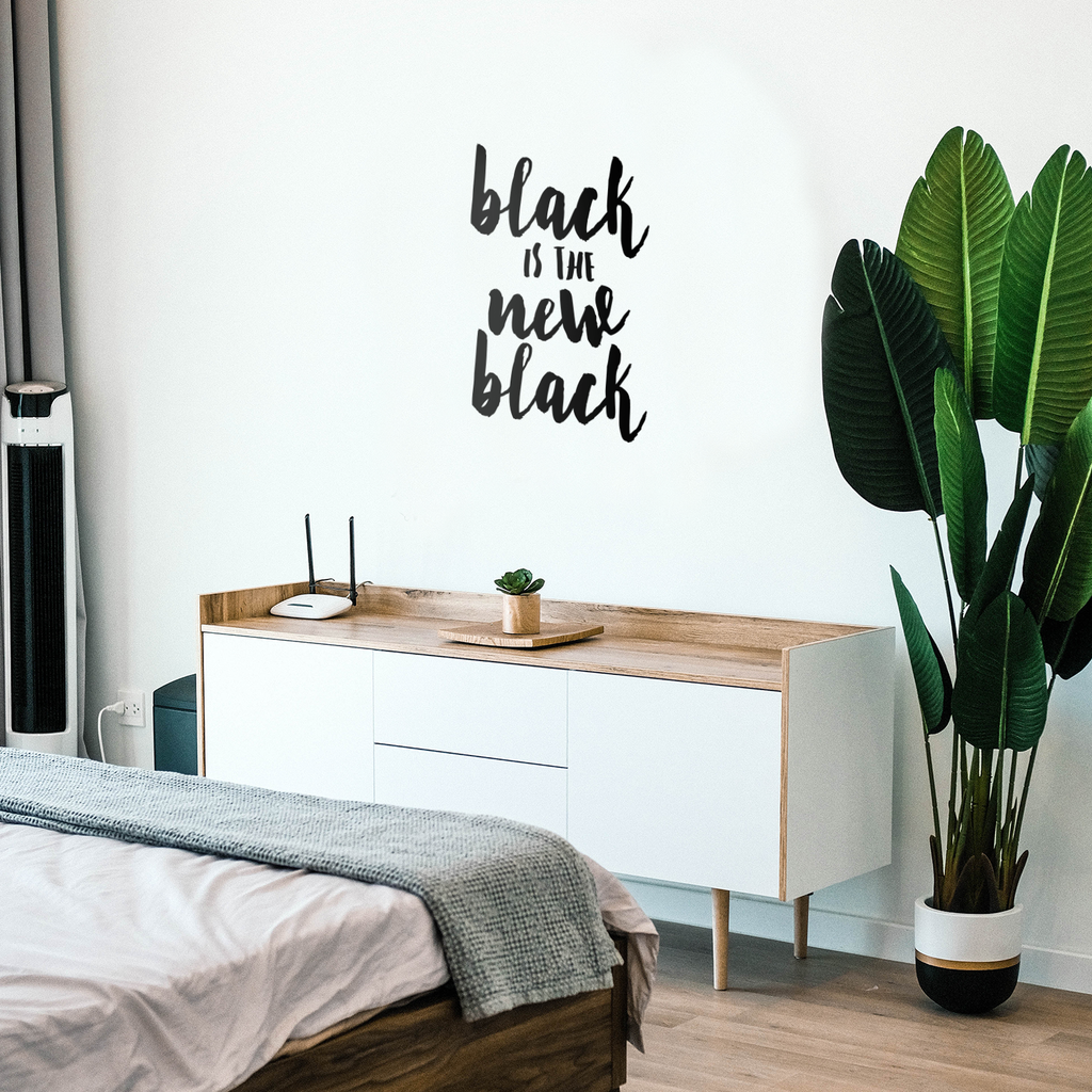 This modern "Black Is The New Black" wall art decal is trendy and the perfect touch for your home. Use it for your bedroom; living room; closet; or anywhere you want to bring some extra decoration. It's a vinyl sticker that is easy to put on almost any smooth and dry surface. Our modern designs don't just brighten up the room; but brighten up the day. Using top of the line vinyl across all of our production allows us to be the leaders in quality and design.