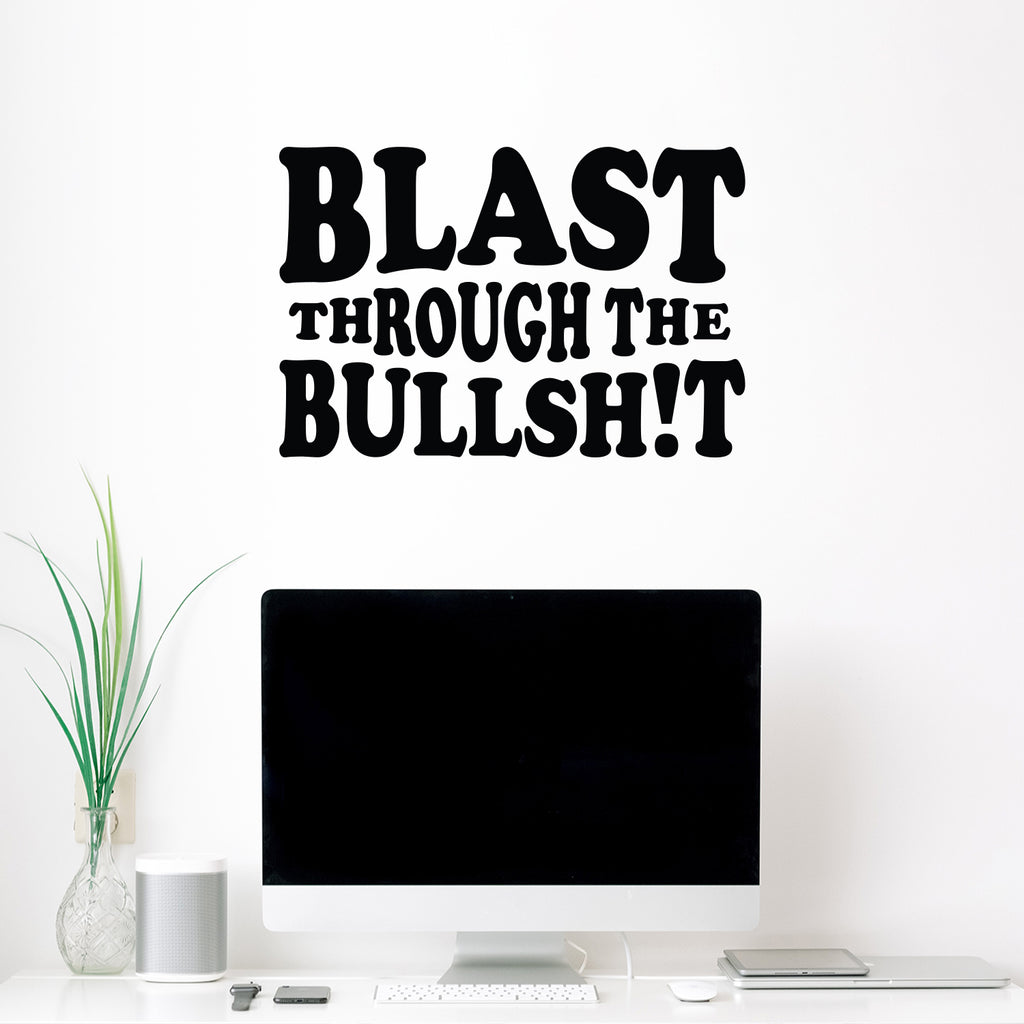 This awesome funny & sarcastic decal quote "Blast Through The Bullsh!t "; is the perfect touch for your home or office. Use it for your business; coffee shop; bathroom or anywhere you want to bring some extra inspirational decoration. It's a vinyl sticker that is easy to put on any smooth and dry surface. Our modern designs don't just brighten up the room; but brighten up the day. Using top of the line vinyl across all of our production allows us to be the leaders in quality and design.