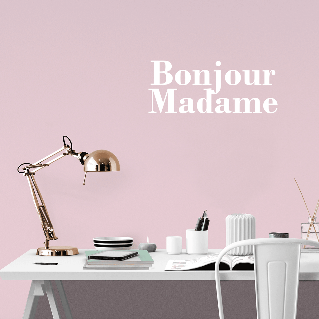 This modern french decal quote "Bonjour Madame"; is the perfect touch for your home. Use it for your living room; bedroom; office or anywhere you want to bring some extra decoration. It's a vinyl sticker that is easy to put on any smooth and dry surface. Our modern designs don't just brighten up the room; but brighten up the day. Using top of the line vinyl across all of our production allows us to be the leaders in quality and design.