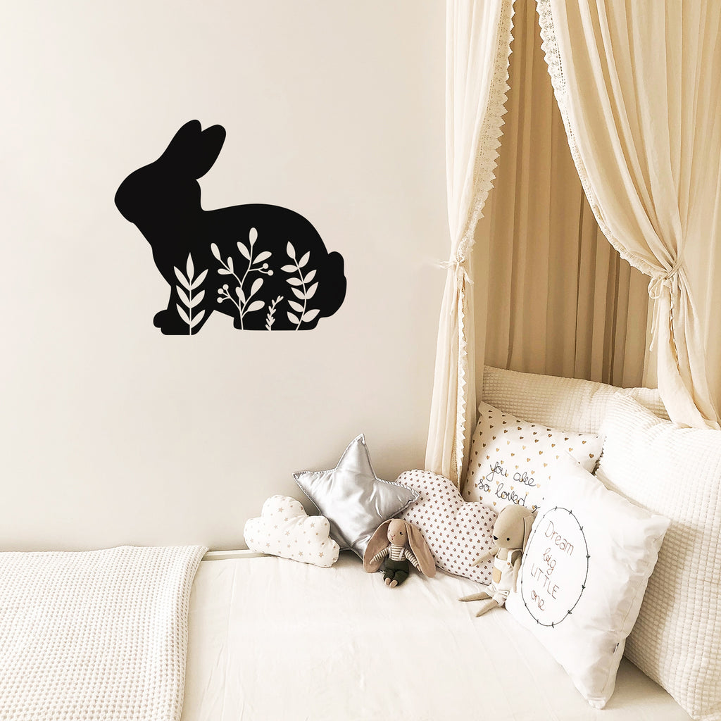 This great decal "Bunny"; is the perfect touch for your home. Use it for your kids room; school; office or anywhere you want to bring some extra decoration. It's a vinyl sticker that is easy to put on any smooth and dry surface. Our modern designs don't just brighten up the room; but brighten up the day. Using top of the line vinyl across all of our production allows us to be the leaders in quality and design.