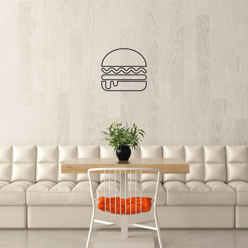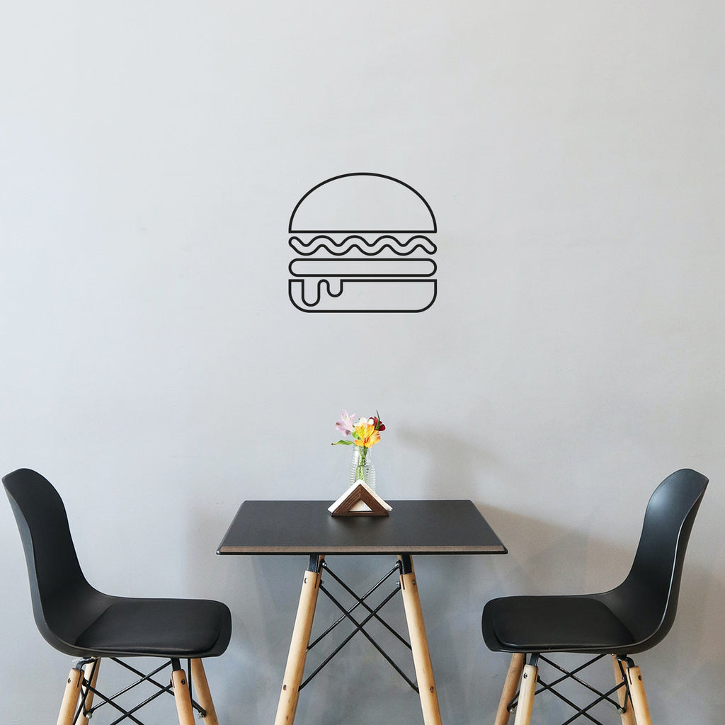 This awesome funny decal quote "Burger Sign"; is the perfect touch for your home or office. Use it for your dining room; restaurant; kitchen or anywhere you want to bring some extra decoration. It's a vinyl sticker that is easy to put on any smooth and dry surface. Our modern designs don't just brighten up the room; but brighten up the day. Using top of the line vinyl across all of our production allows us to be the leaders in quality and design.
