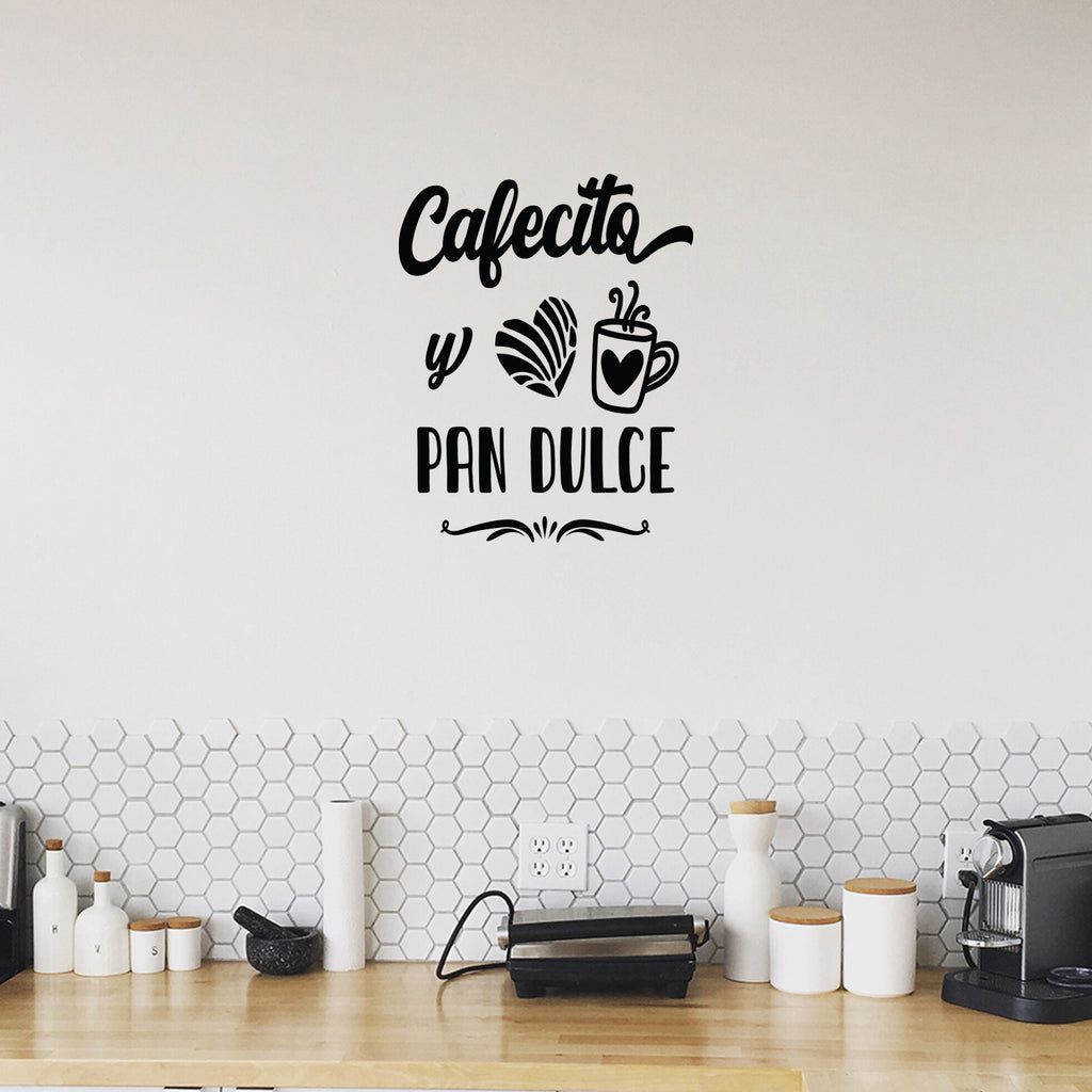 This awesome motivational decal quote "Cafecito Y Pan Dulce"; is the perfect touch for your home or coffee shop. Use it for your dining room; kitchen or anywhere you want to bring some extra decoration. It's a vinyl sticker that is easy to put on any smooth and dry surface. Our modern designs don't just brighten up the room; but brighten up the day. Using top of the line vinyl across all of our production allows us to be the leaders in quality and design.