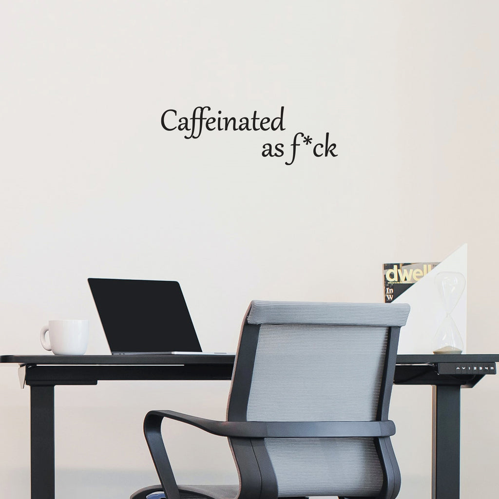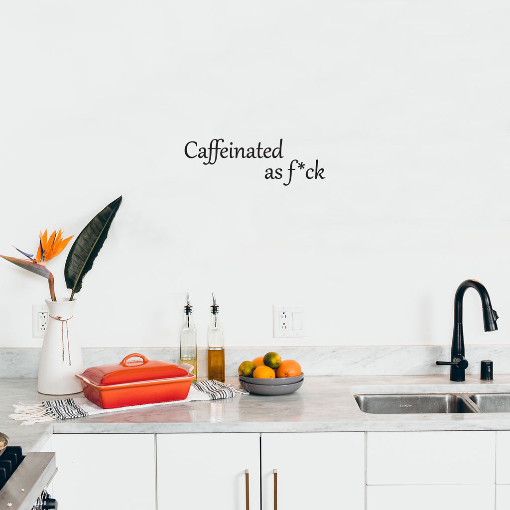 This awesome funny decal quote "Caffeinated As F*ck"; is the perfect touch for your home or office. Use it for your restaurant; living room; coffee shop or anywhere you want to bring some extra positive decoration. It's a vinyl sticker that is easy to put on any smooth and dry surface. Our modern designs don't just brighten up the room; but brighten up the day. Using top of the line vinyl across all of our production allows us to be the leaders in quality and design.
