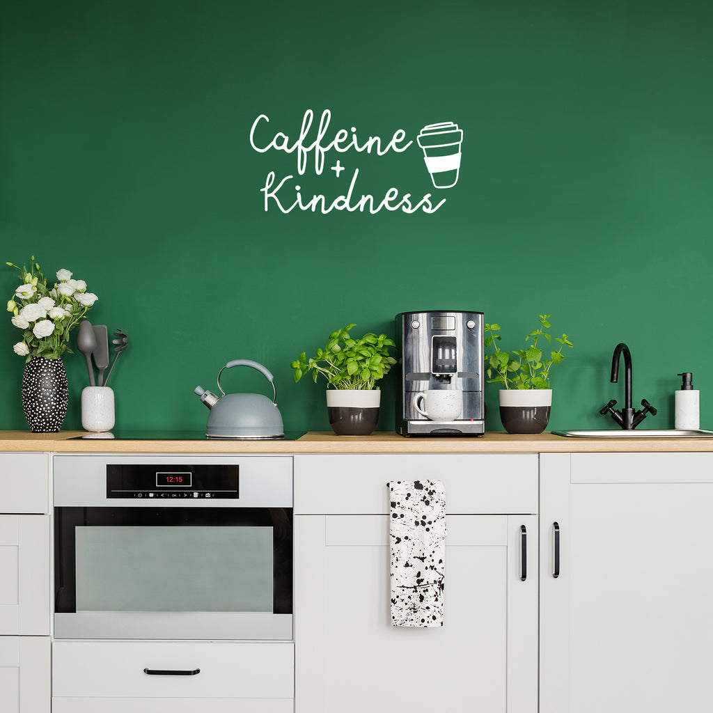 This awesome funny & inspiring decal quote "Caffeine + Kindness"; is the perfect touch for your office or coffee shop. Use it for your dining room; restaurant; kitchen or anywhere you want to bring some extra fun decoration. It's a vinyl sticker that is easy to put on any smooth and dry surface. Our modern designs don't just brighten up the room; but brighten up the day. Using top of the line vinyl across all of our production allows us to be the leaders in quality and design.