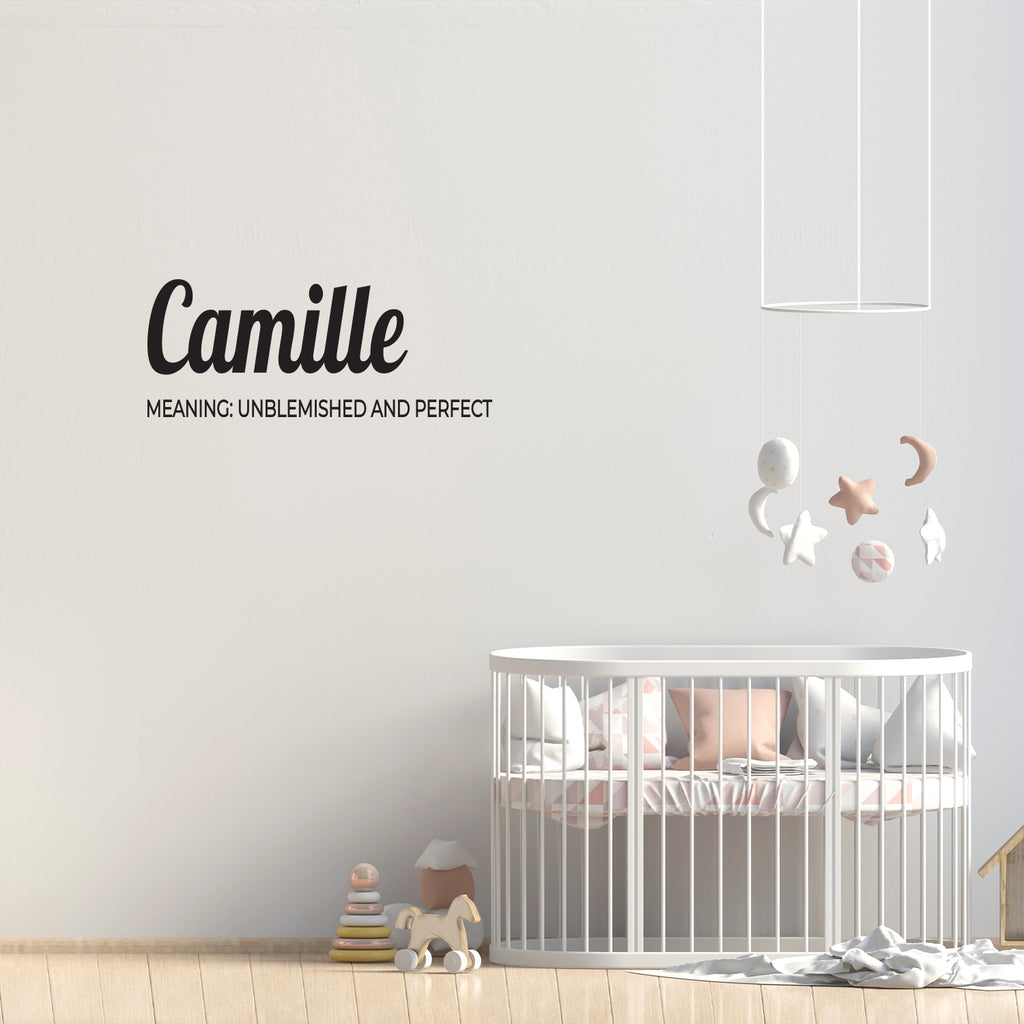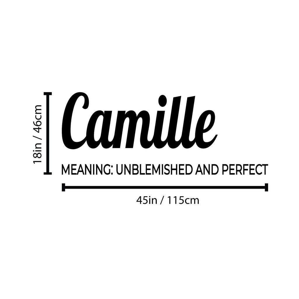 This cute decal quote "Camille Meaning" is the perfect touch for your home. Use it for your nursery; playroom; kids room or anywhere you want to bring some extra cute decoration. It's a vinyl sticker that is easy to put on any smooth and dry surface. Our modern designs don't just brighten up the room; but brighten up the day. Using top of the line vinyl across all of our production allows us to be the leaders in quality and design.