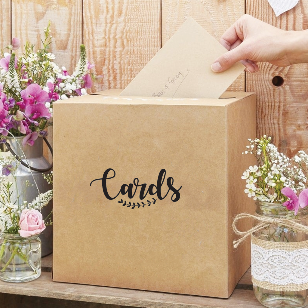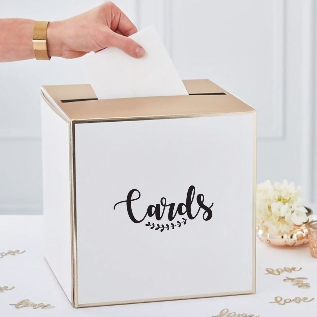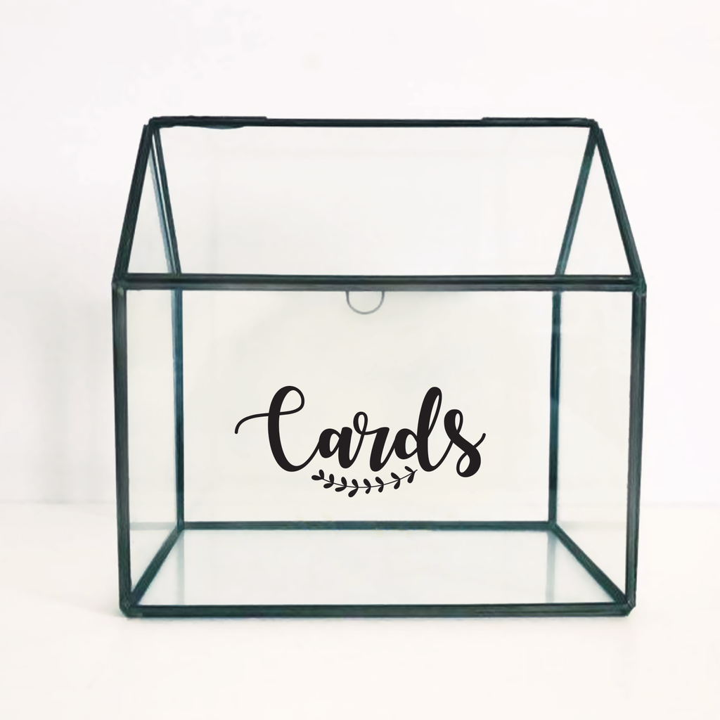 This "Cards" quote vinyl art decal is that goes on a wedding card box. It is a vinyl sticker that is easy to put onto almost any smooth surface perfect for your wedding day for guests to leave heart-felt messages. This vinyl decal quote is great to give as a wedding gift; to decorate a wedding reception; or to buy for your home. Our charming quotes don't just brighten up the room; but brighten up the day. Using top of the line vinyl across all of our production allows us to be the leaders in quality and design.