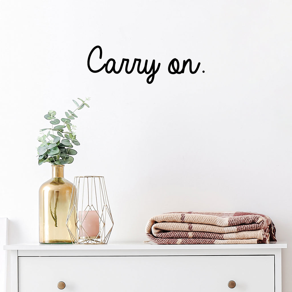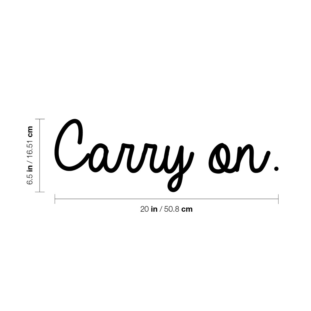 This cute motivational & positive decal quote "Carry On"; is the perfect touch for your home or school. Use it for your living room; office; coffee shop or anywhere you want to bring some extra positive decoration. It's a vinyl sticker that is easy to put on any smooth and dry surface. Our modern designs don't just brighten up the room; but brighten up the day. Using top of the line vinyl across all of our production allows us to be the leaders in quality and design.