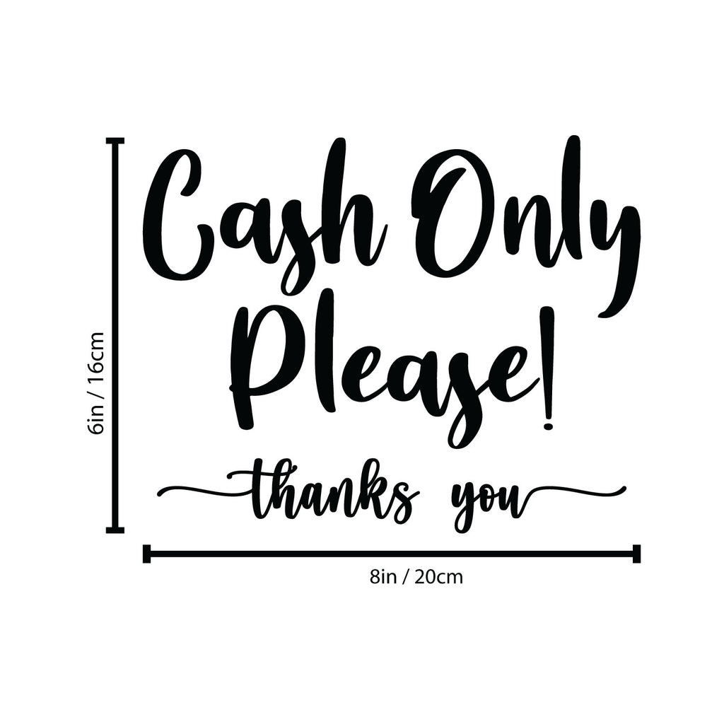This decal quote "Cash Only Please"; is the perfect touch for your office or coffee shop. Use it for your dining room; restaurant; kitchen or anywhere you want to bring some extra fun decoration. It's a vinyl sticker that is easy to put on any smooth and dry surface. Our modern designs don't just brighten up the room; but brighten up the day. Using top of the line vinyl across all of our production allows us to be the leaders in quality and design.
