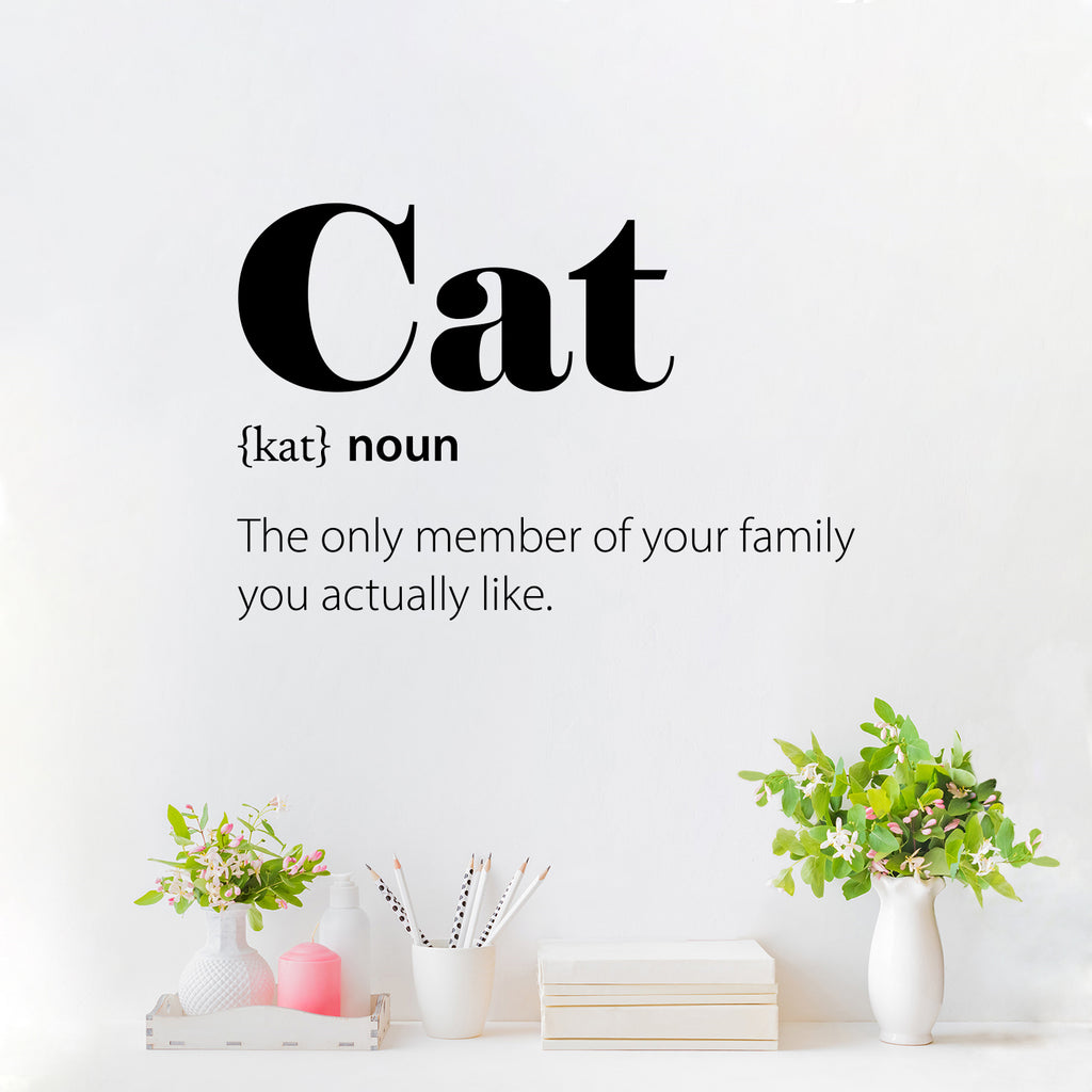 This awesome inspirational decal quote "Cat Definition"; is the perfect touch for your home or office. Use it for your storefront; coffee shop or anywhere you want to bring some extra funny decoration. It's a vinyl sticker that is easy to put on any smooth and dry surface. Our modern designs don't just brighten up the room; but brighten up the day. Using top of the line vinyl across all of our production allows us to be the leaders in quality and design.