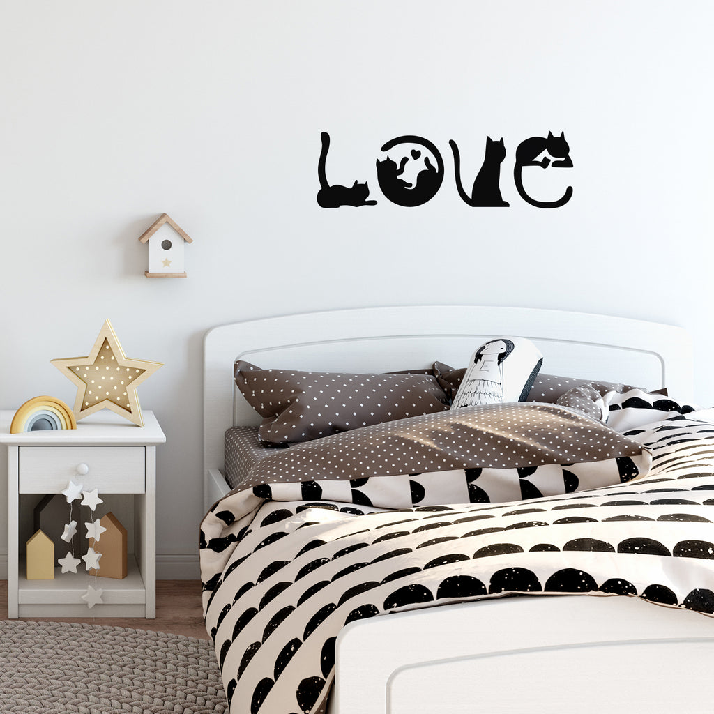 This awesome cute inspirational & fun design decal shape "Cat Love"; is the perfect touch for your home or business. Use it for your living room; office; storefront or anywhere you want to bring some extra cute decoration. It's a vinyl sticker that is easy to put on any smooth and dry surface. Our modern designs don't just brighten up the room; but brighten up the day. Using top of the line vinyl across all of our production allows us to be the leaders in quality and design.
