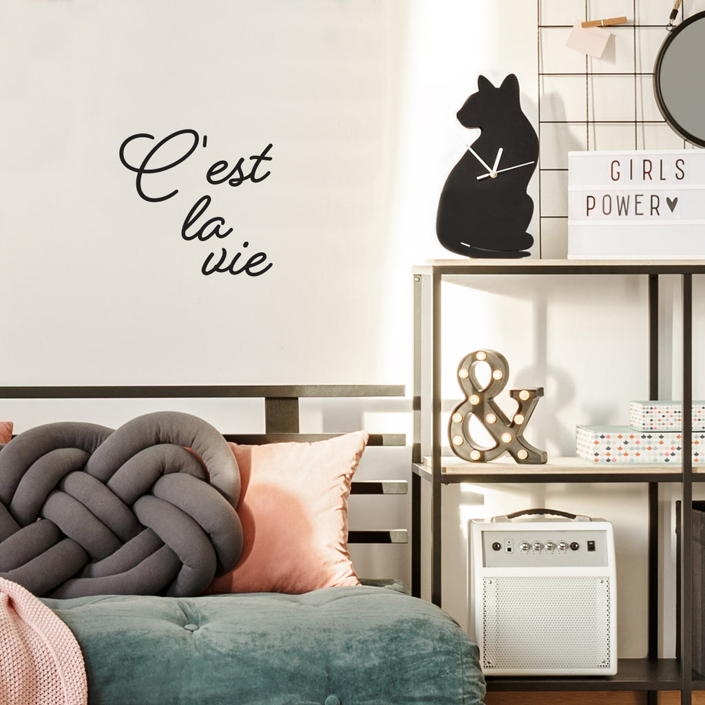 This awesome lovely & sweet inspirational decal quote "C'est la vie"; is the perfect touch for your home. Use it for your bedroom; living room; class or anywhere you want to bring some extra decoration. It's a vinyl sticker that is easy to put on any smooth and dry surface. Our modern designs don't just brighten up the room; but brighten up the day. Using top of the line vinyl across all of our production allows us to be the leaders in quality and design.