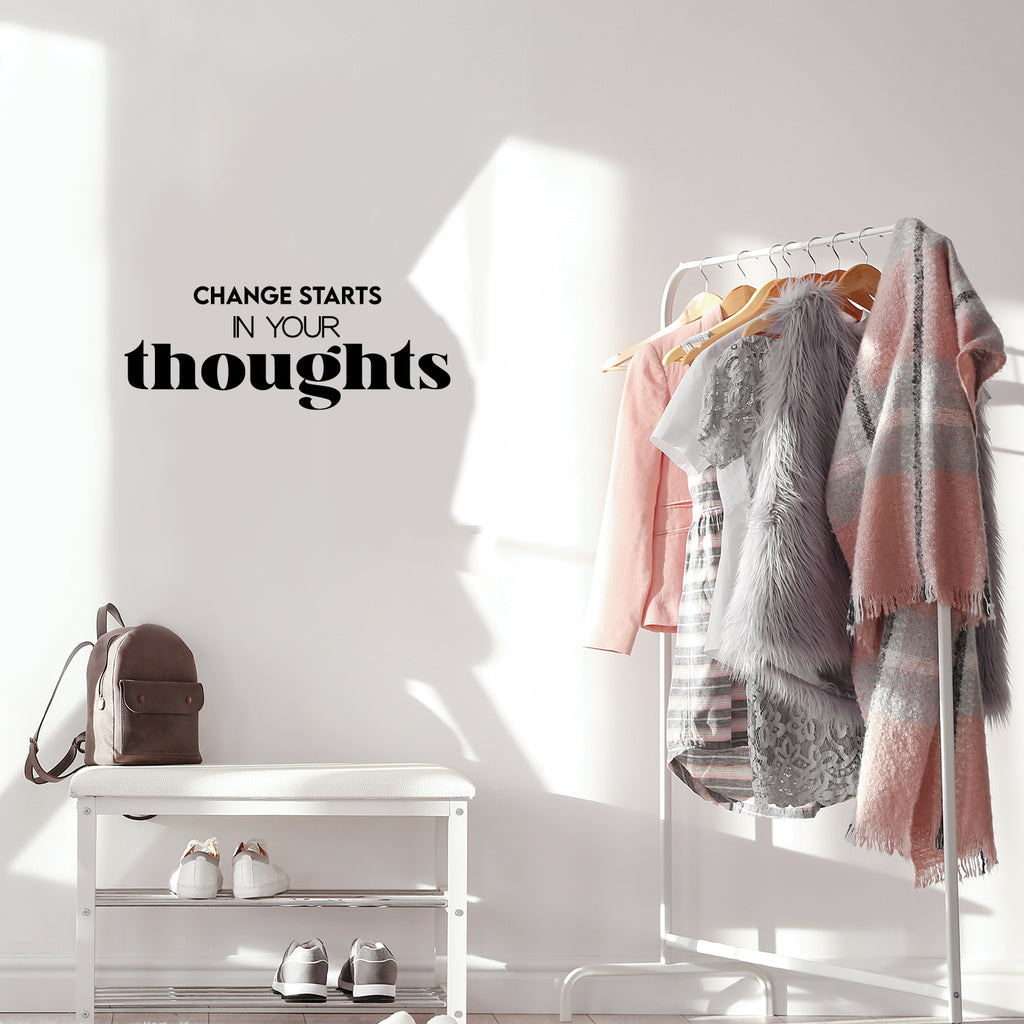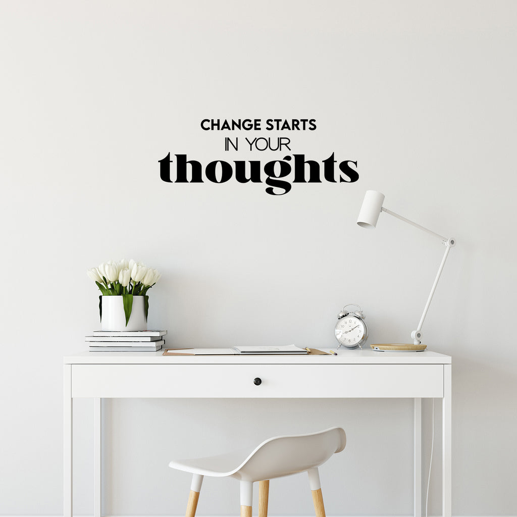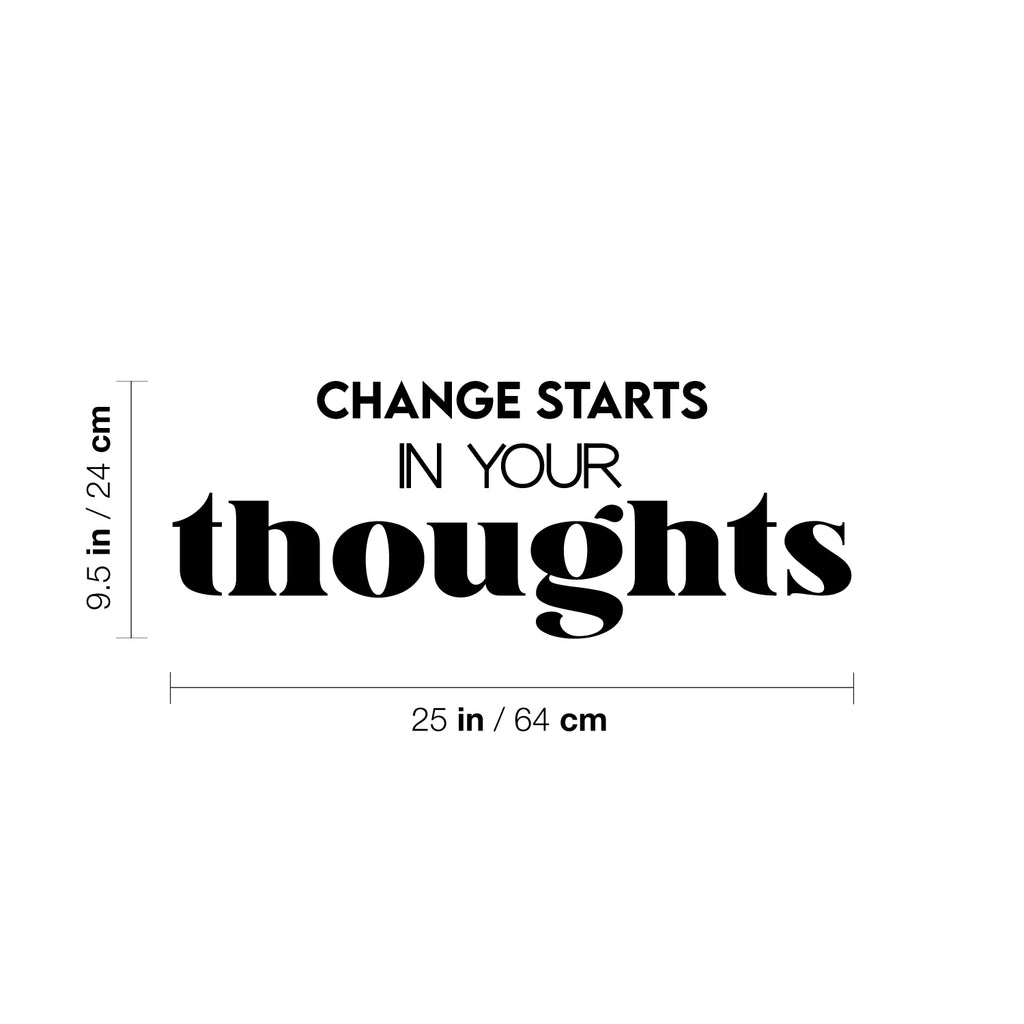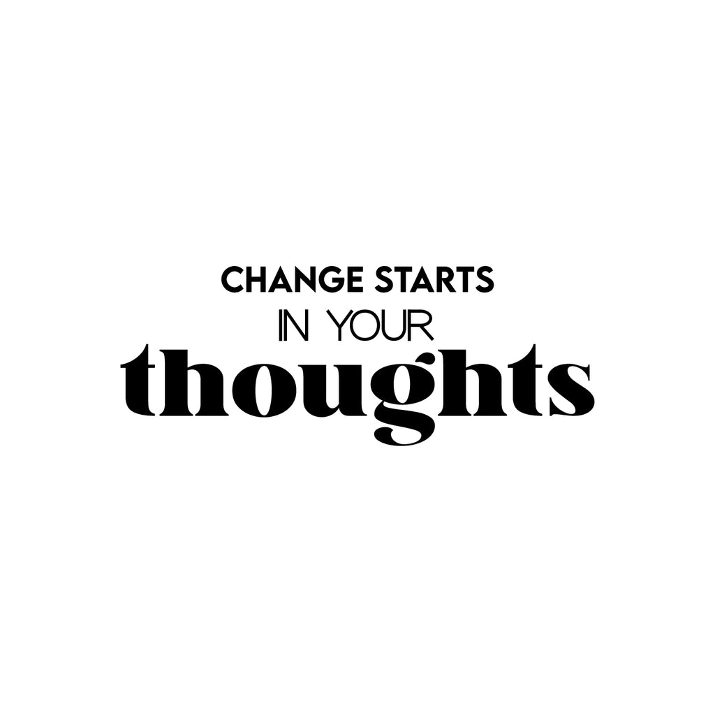 This awesome optimistic & motivational decal quote "Change Starts In Your Thoughts"; is the perfect touch for your gym or office. Use it for your living room; school; workout space or anywhere you want to bring some extra positive decoration. It's a vinyl sticker that is easy to put on any smooth and dry surface. Our modern designs don't just brighten up the room; but brighten up the day. Using top of the line vinyl across all of our production allows us to be the leaders in quality and design.