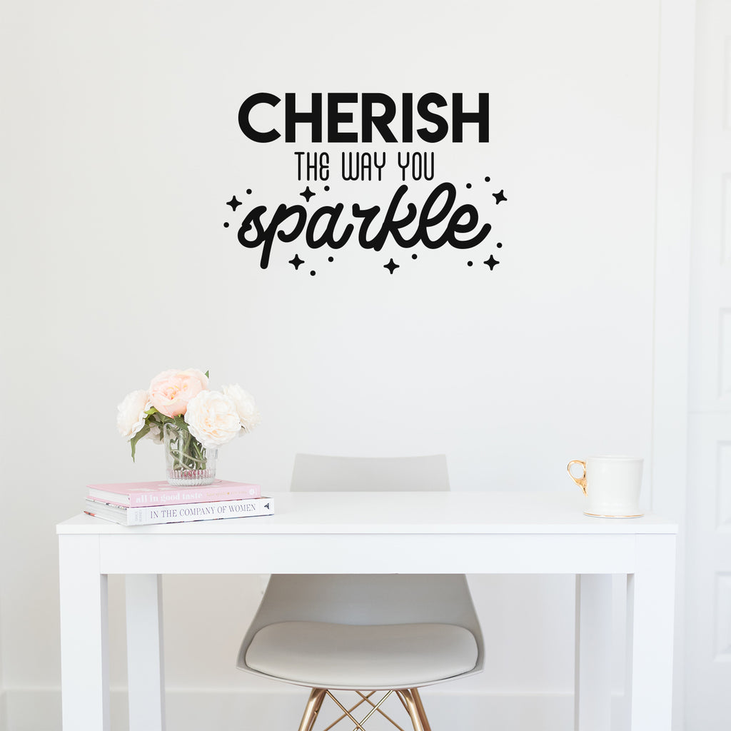 This cute & motivational decal quote "Cherish The Way You Sparkle"; is the perfect touch for your school or office. Use it for your living room; playroom; kids room or anywhere you want to bring some extra optimistic decoration. It's a vinyl sticker that is easy to put on any smooth and dry surface. Our modern designs don't just brighten up the room; but brighten up the day. Using top of the line vinyl across all of our production allows us to be the leaders in quality and design.