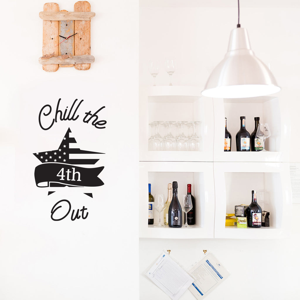 This patriotism decal quote "Chill The 4th Out"; is the perfect touch for your home. Use it for your bedroom; living room or anywhere you want to bring some extra positive decoration. It's a vinyl sticker that is easy to put on any smooth and dry surface. Our modern designs don't just brighten up the room; but brighten up the day. Using top of the line vinyl across all of our production allows us to be the leaders in quality and design.