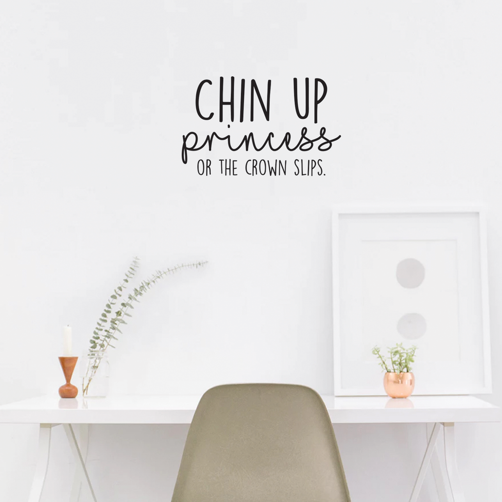 Vinyl Wall Art Decal - Chin Up Princess Or The Crown Slips - Trendy Motivational Positive Women Quote For Home Bedroom Living Room Work Office Decoration Sticker
