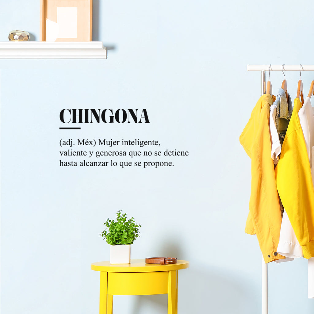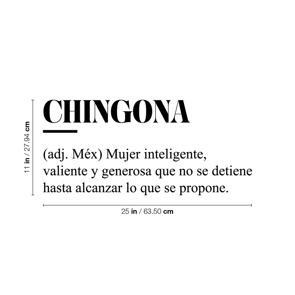 This cool funny & sarcastic decal quote "Chingona. Mujer inteligente; valiente y generosa que no se detiene hasta alcanzar lo que se propone"; is the perfect touch for your home or office. Use it for your business; coffee shop or anywhere you want to bring some extra positive decoration. It's a vinyl sticker that is easy to put on any smooth and dry surface. Our modern designs don't just brighten up the room; but brighten up the day. Using top of the line vinyl across all of our production allows us to be the leaders in quality and design.