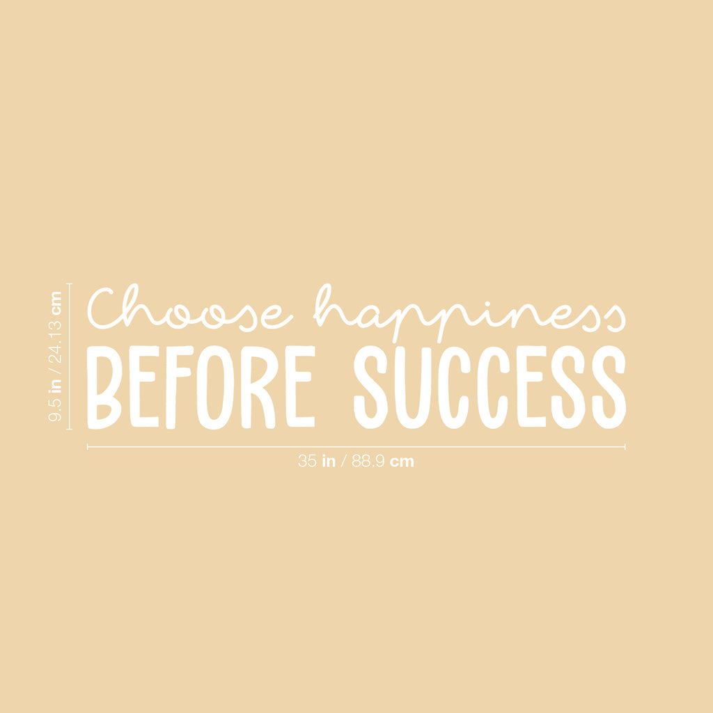 This cute & positive decal quote "Choose Happiness Before Success"; is the perfect touch for your home or school. Use it for your living room; office; coffee shop or anywhere you want to bring some extra positive decoration. It's a vinyl sticker that is easy to put on any smooth and dry surface. Our modern designs don't just brighten up the room; but brighten up the day. Using top of the line vinyl across all of our production allows us to be the leaders in quality and design.