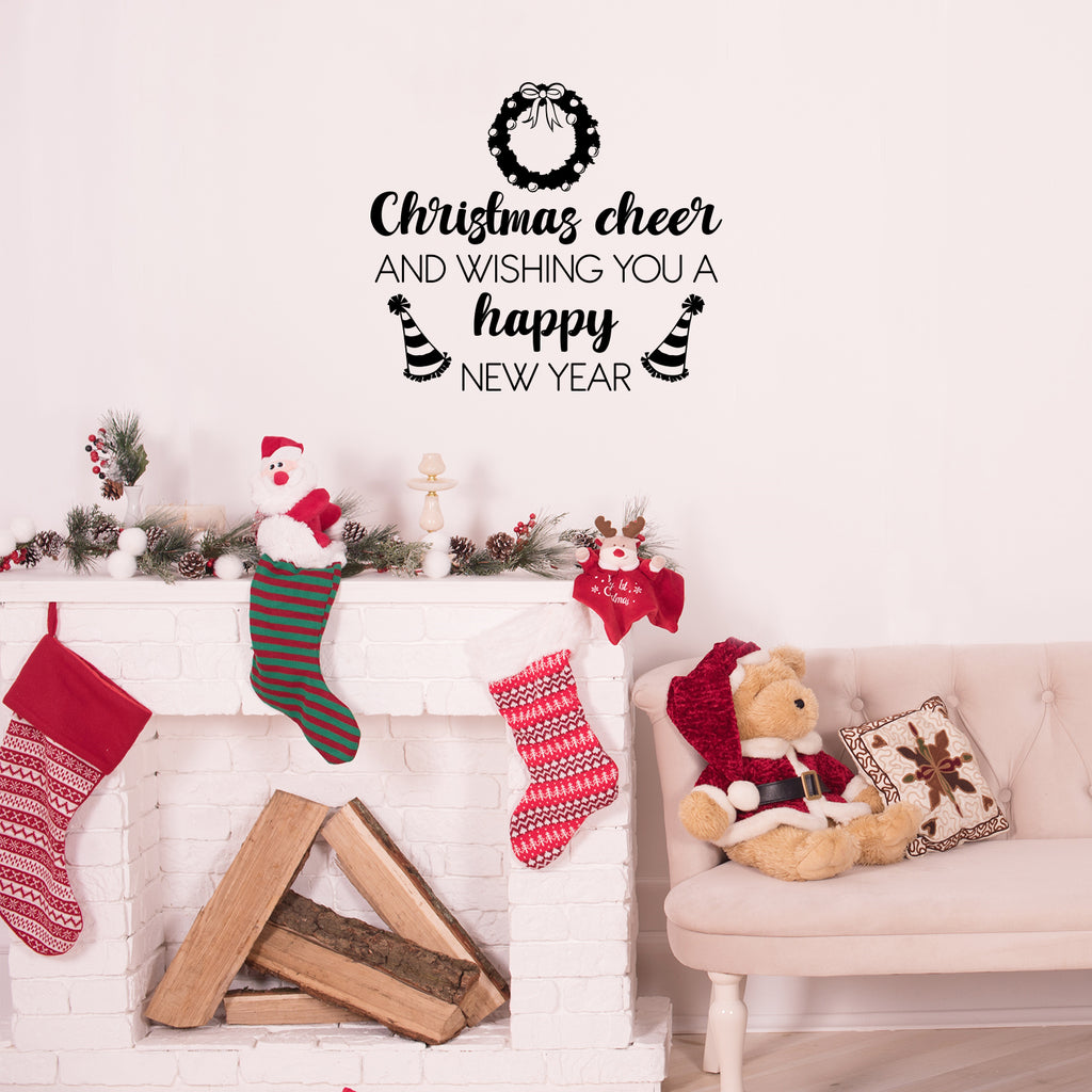 This awesome modern lovely holyday season decal design "Christmas Cheer And Wishing You A Happy New Year"; is the perfect touch for your home or office. Use it for your entry door; windows; storefront or anywhere you want to bring some cute decoration. It's a vinyl sticker that is easy to put on any smooth and dry surface. Our modern designs don't just brighten up the room; but brighten up the day. Using top of the line vinyl across all of our production allows us to be the leaders in quality and design.