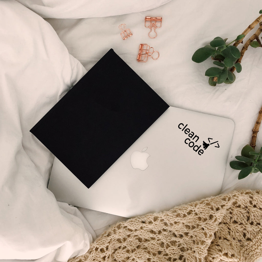 This decal quote "Clean Code"; is the perfect touch for your home. Use it for your dresser mirror; car bumpers; laptops; office or anywhere you want to bring some extra cute decoration. It's a vinyl sticker that is easy to put on any smooth and dry surface. Our modern designs don't just brighten up the room; but brighten up the day. Using top of the line vinyl across all of our production allows us to be the leaders in quality and design.