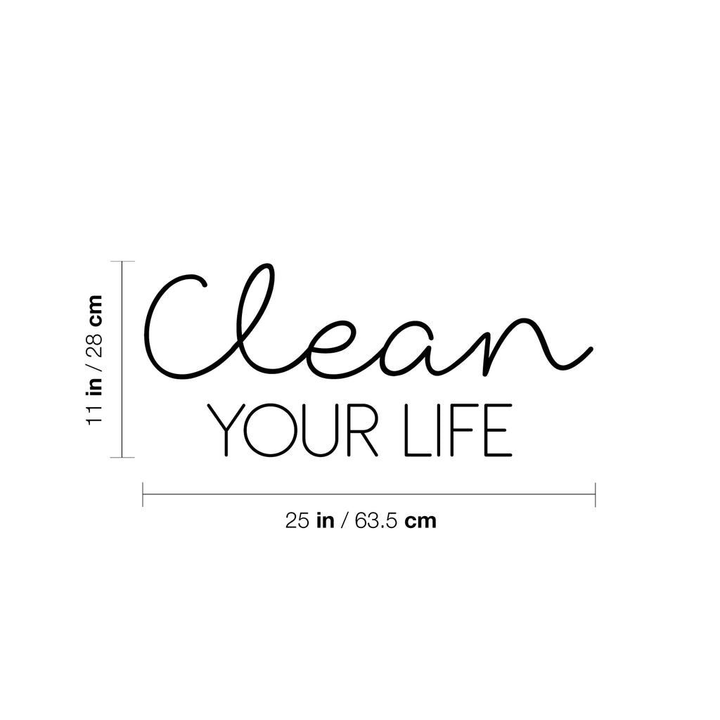 This great decal quote "Clean Your Life"; is the perfect touch for your home. Use it for your kids room; living room or anywhere you want to bring some extra decoration. It's a vinyl sticker that is easy to put on any smooth and dry surface. Our modern designs don't just brighten up the room; but brighten up the day. Using top of the line vinyl across all of our production allows us to be the leaders in quality and design.