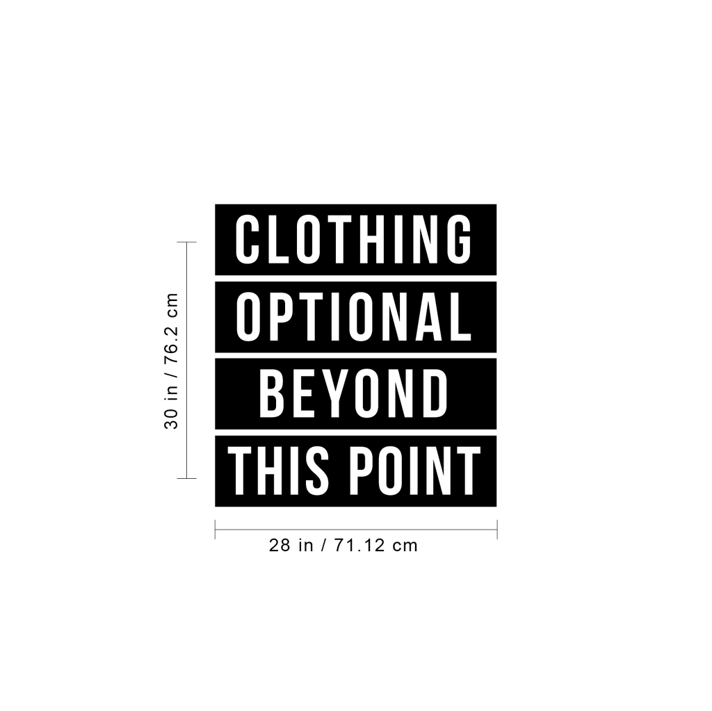 This "Clothing Optional Beyond This Point" quote wall art decal is funny and the perfect touch for indoor decoration. It's a vinyl sticker that is easy to put on almost any smooth surface and really brings a room together adding the perfect touch of decoration. This vinyl decal quote is perfect for your home to give your bathroom; bathtub; or shower some personality. Our modern quotes don't just brighten up the room; but brighten up the day. Using top of the line vinyl across all of our production allows us to be the leaders in quality and design.
