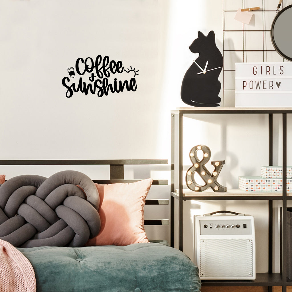 This decal quote "Coffee And Sunshine"; is the perfect touch for your office or coffee shop. Use it for your dining room; restaurant; kitchen or anywhere you want to bring some extra fun decoration. It's a vinyl sticker that is easy to put on any smooth and dry surface. Our modern designs don't just brighten up the room; but brighten up the day. Using top of the line vinyl across all of our production allows us to be the leaders in quality and design.