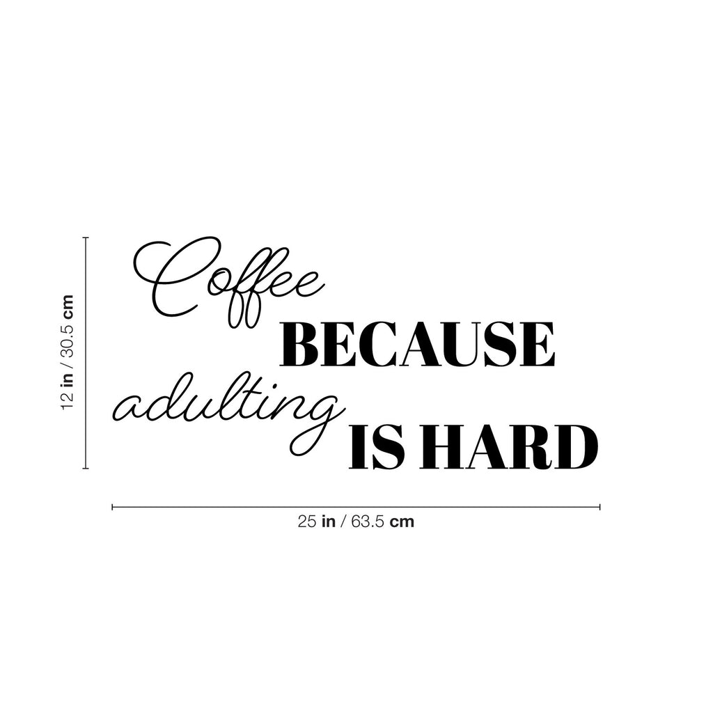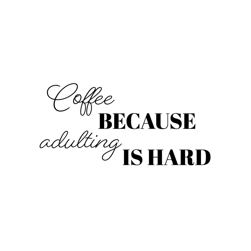 This awesome decal quote "Coffee Because Adulting Is Hard"; is the perfect touch for your home. Use it for your kitchen; living room; office kitchenette or anywhere you want to bring some extra decoration. It's a vinyl sticker that is easy to put on any smooth and dry surface. Our modern designs don't just brighten up the room; but brighten up the day. Using top of the line vinyl across all of our production allows us to be the leaders in quality and design.
