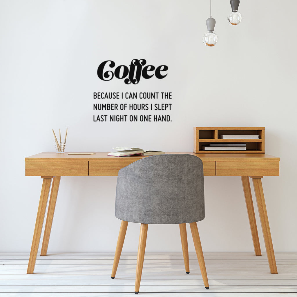 Vinyl Wall Art Decal - Coffee Because I Can Count The Number Of Hours I Slept Last Night On One Hand - Trendy Quote Sticker For Home Office Kitchenette Decor
