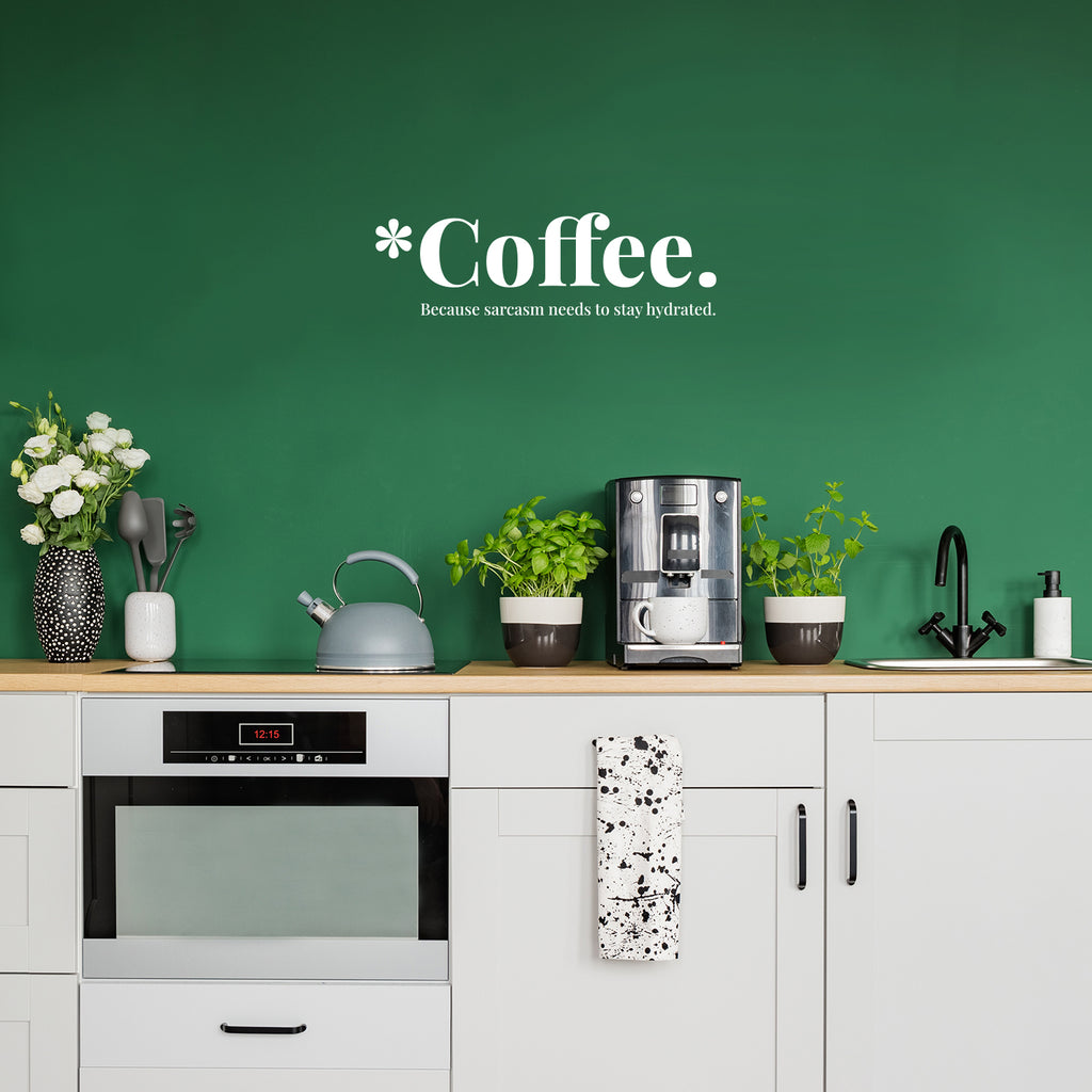 This awesome funny & inspiring decal quote "Coffee Because Sarcasm Needs To Stay Hydrated"; is the perfect touch for your office or coffee shop. Use it for your dining room; restaurant; kitchen or anywhere you want to bring some extra fun decoration. It's a vinyl sticker that is easy to put on any smooth and dry surface. Our modern designs don't just brighten up the room; but brighten up the day. Using top of the line vinyl across all of our production allows us to be the leaders in quality and design.