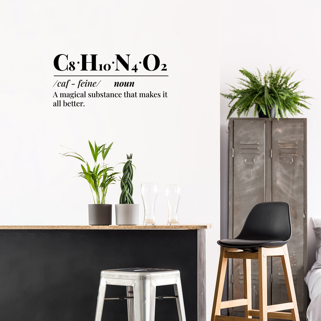 This awesome decal quote "Coffee Formula"; is the perfect touch for your home. Use it for your kitchen; living room; office kitchenette or anywhere you want to bring some extra decoration. It's a vinyl sticker that is easy to put on any smooth and dry surface. Our modern designs don't just brighten up the room; but brighten up the day. Using top of the line vinyl across all of our production allows us to be the leaders in quality and design.