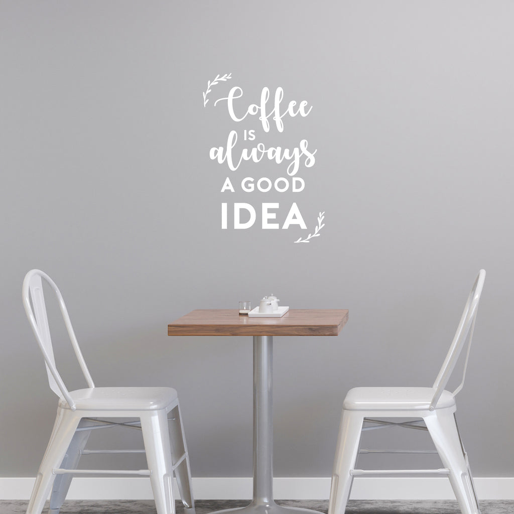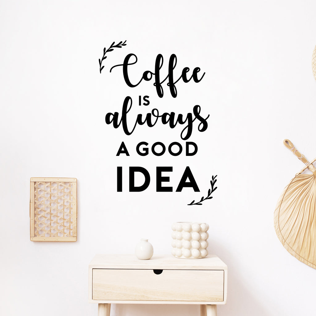 This awesome funny & inspiring decal quote "Coffee is Always A Good Idea"; is the perfect touch for your office or coffee shop. Use it for your dining room; restaurant; kitchen or anywhere you want to bring some extra fun decoration. It's a vinyl sticker that is easy to put on any smooth and dry surface. Our modern designs don't just brighten up the room; but brighten up the day. Using top of the line vinyl across all of our production allows us to be the leaders in quality and design.