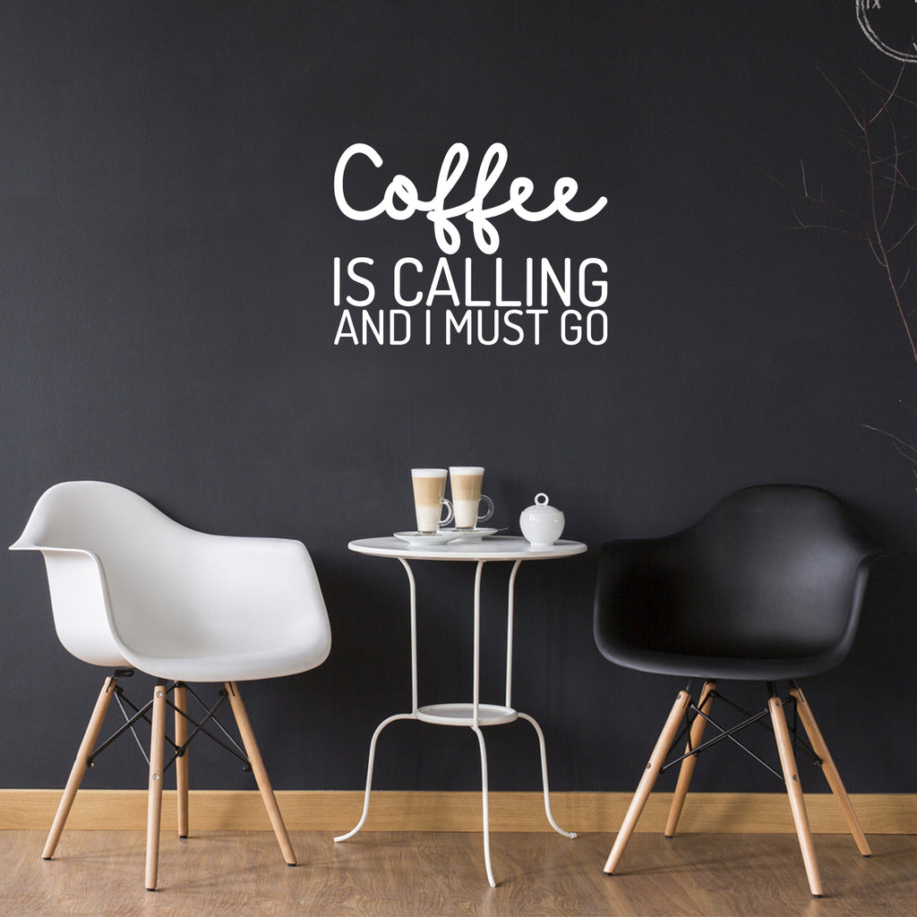 Vinyl Wall Art Decal - Coffee Is Calling And I Must Go - 18.5" x 25" - Modern Funny Cafe Quote Sticker For Coffee Lovers Home Work Office kitchenette Restaurant Kitchen Store Decor