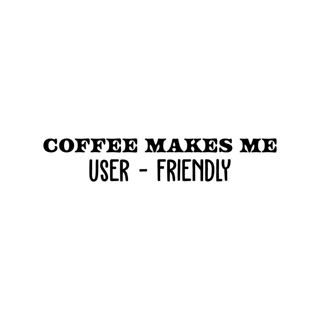This awesome decal quote "Coffee Makes Me User - Friendly"; is the perfect touch for your home. Use it for your kitchen; living room; office kitchenette or anywhere you want to bring some extra decoration. It's a vinyl sticker that is easy to put on any smooth and dry surface. Our modern designs don't just brighten up the room; but brighten up the day. Using top of the line vinyl across all of our production allows us to be the leaders in quality and design.