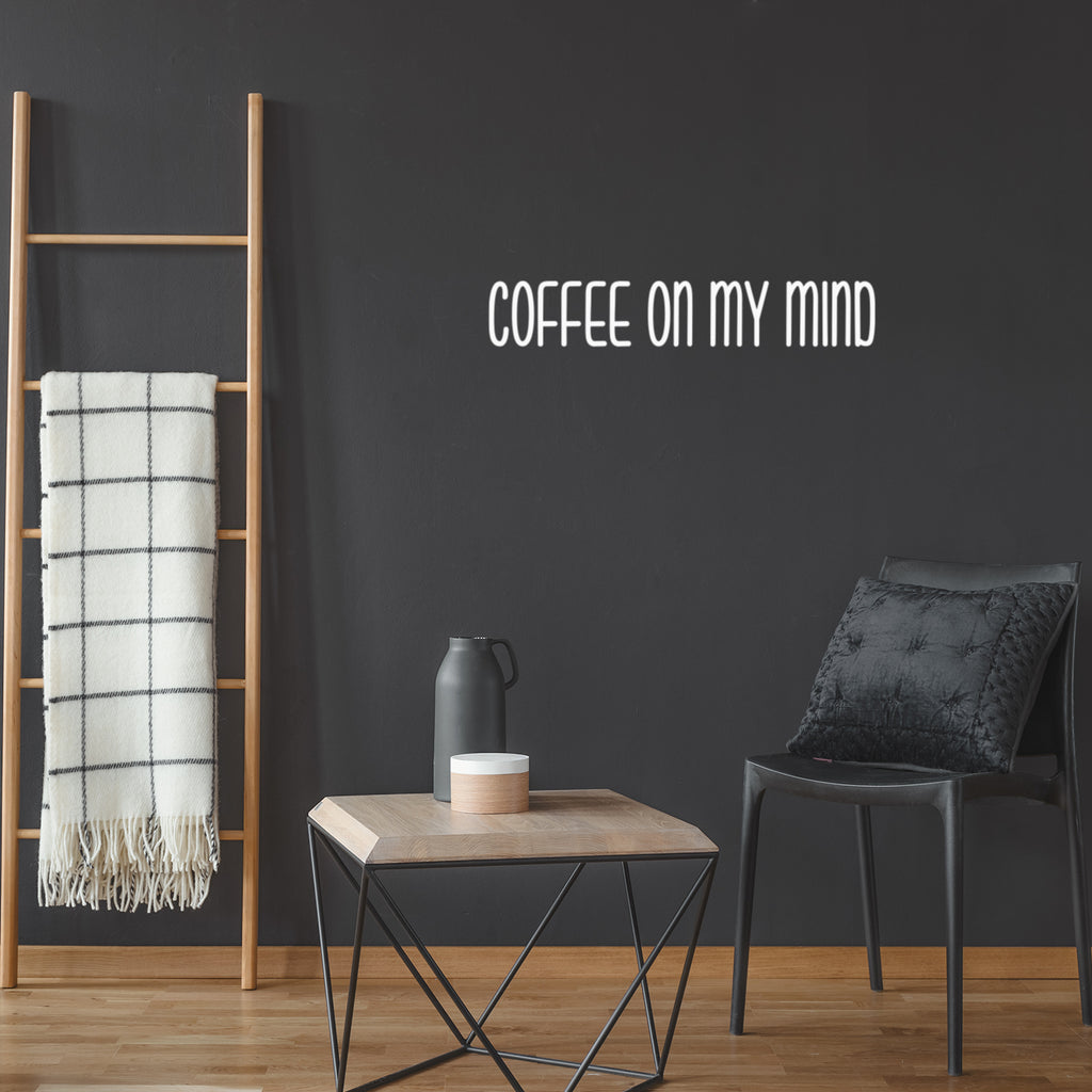 This awesome fun & positive decal quote "Coffee On My Mind"; is the perfect touch for your office or business. Use it for your kitchen; restaurant; business or anywhere you want to bring some extra positive decoration. It's a vinyl sticker that is easy to put on any smooth and dry surface. Our modern designs don't just brighten up the room; but brighten up the day. Using top of the line vinyl across all of our production allows us to be the leaders in quality and design.