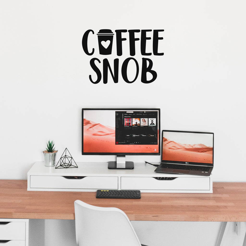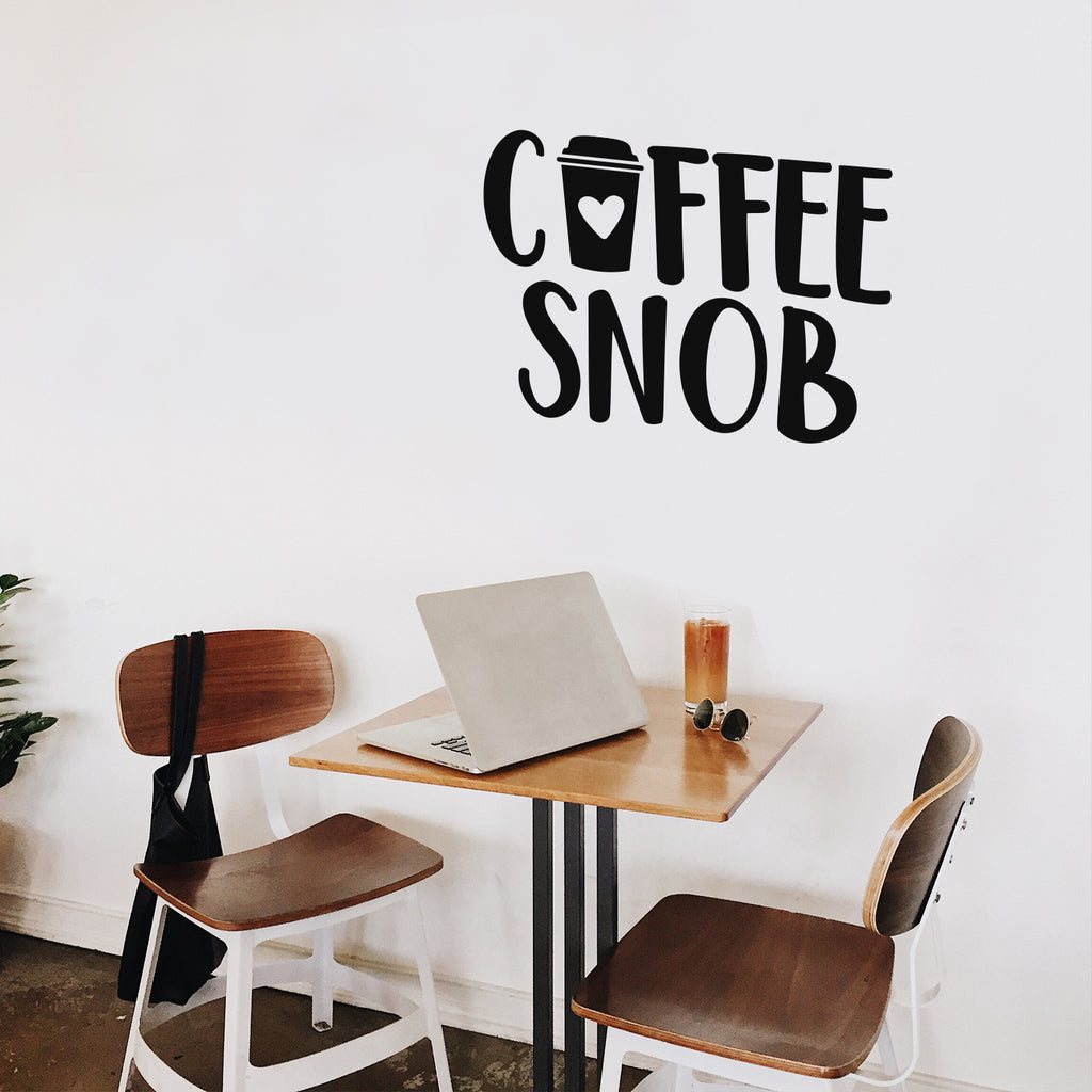 This awesome cute & fun decal quote "Coffee Snob"; is the perfect touch for your office or coffee shop. Use it for your dining room; restaurant; kitchen or anywhere you want to bring some extra fun decoration. It's a vinyl sticker that is easy to put on any smooth and dry surface. Our modern designs don't just brighten up the room; but brighten up the day. Using top of the line vinyl across all of our production allows us to be the leaders in quality and design.