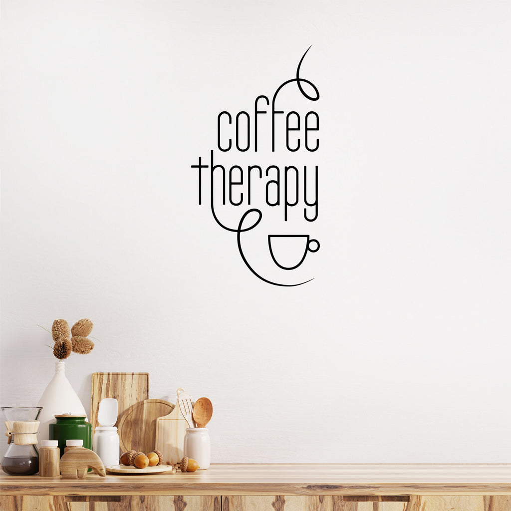 This decal quote "Coffee Therapy"; is the perfect touch for your office or coffee shop. Use it for your dining room; restaurant; kitchen or anywhere you want to bring some extra fun decoration. It's a vinyl sticker that is easy to put on any smooth and dry surface. Our modern designs don't just brighten up the room; but brighten up the day. Using top of the line vinyl across all of our production allows us to be the leaders in quality and design.