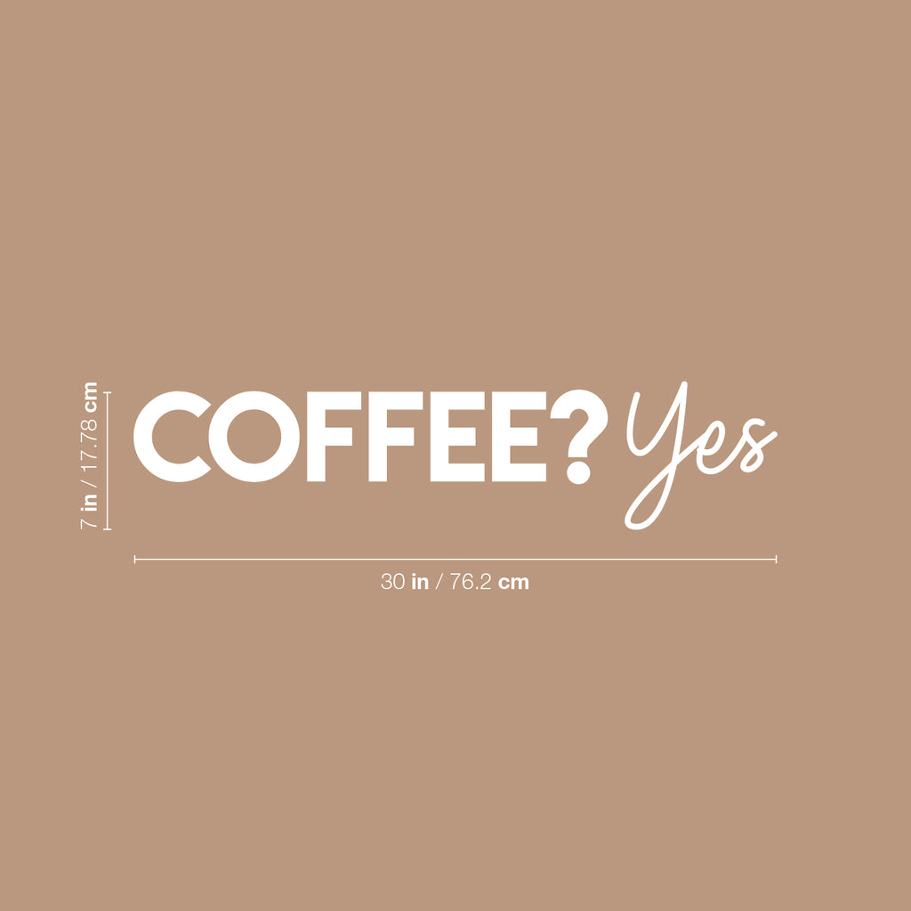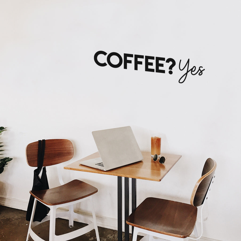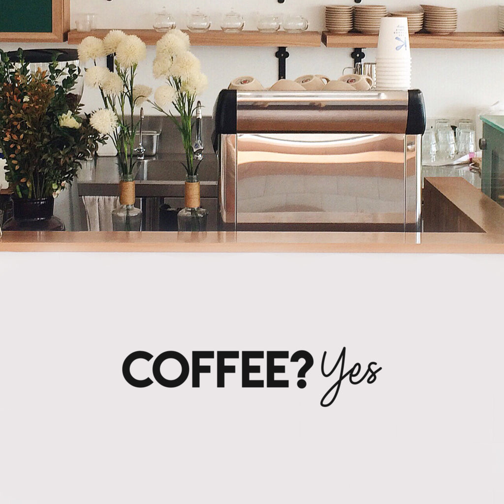 This awesome fun decal quote "Coffee? Yes"; is the perfect touch for your office or coffee shop. Use it for your dining room; restaurant; kitchen or anywhere you want to bring some extra fun decoration. It's a vinyl sticker that is easy to put on any smooth and dry surface. Our modern designs don't just brighten up the room; but brighten up the day. Using top of the line vinyl across all of our production allows us to be the leaders in quality and design.