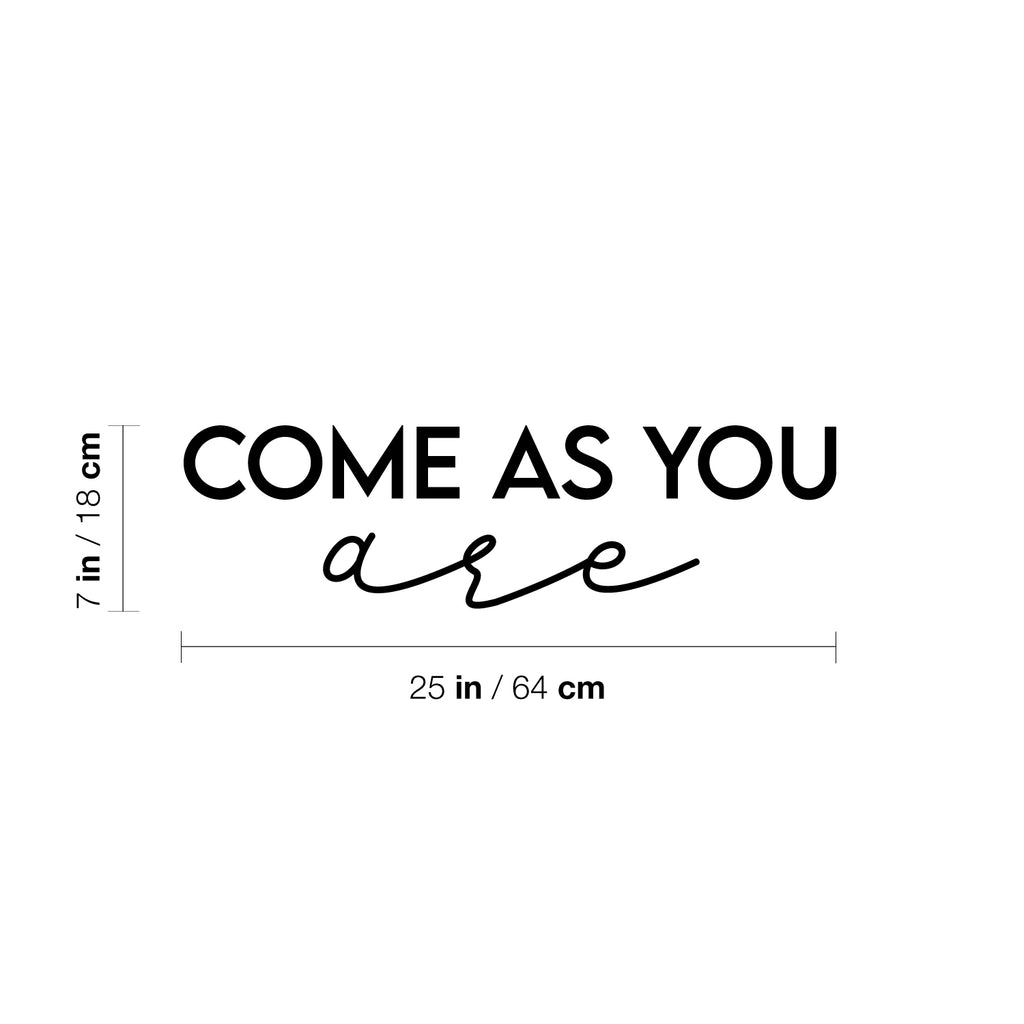 This great decal quote "Come As You Are"; is the perfect touch for your home. Use it for your makeup area; dorm room or anywhere you want to bring some extra decoration. It's a vinyl sticker that is easy to put on any smooth and dry surface. Our modern designs don't just brighten up the room; but brighten up the day. Using top of the line vinyl across all of our production allows us to be the leaders in quality and design.