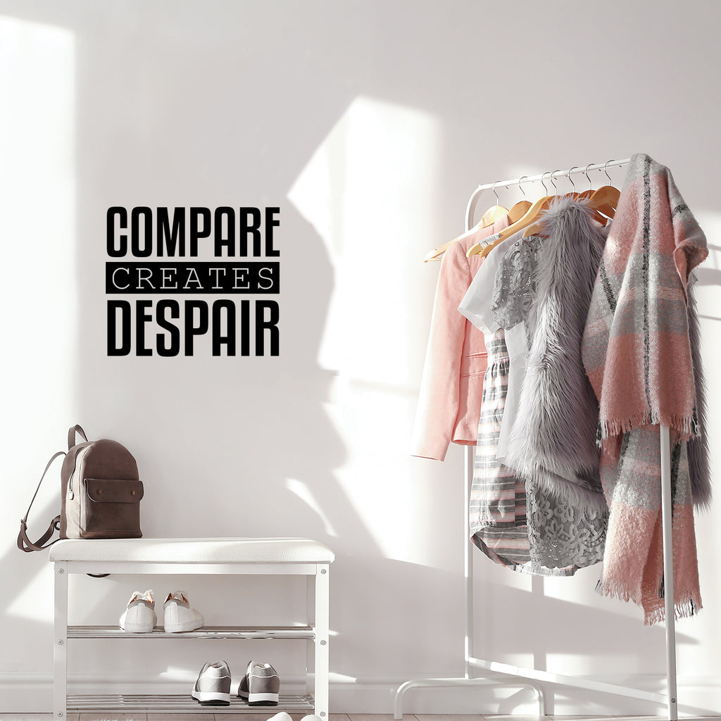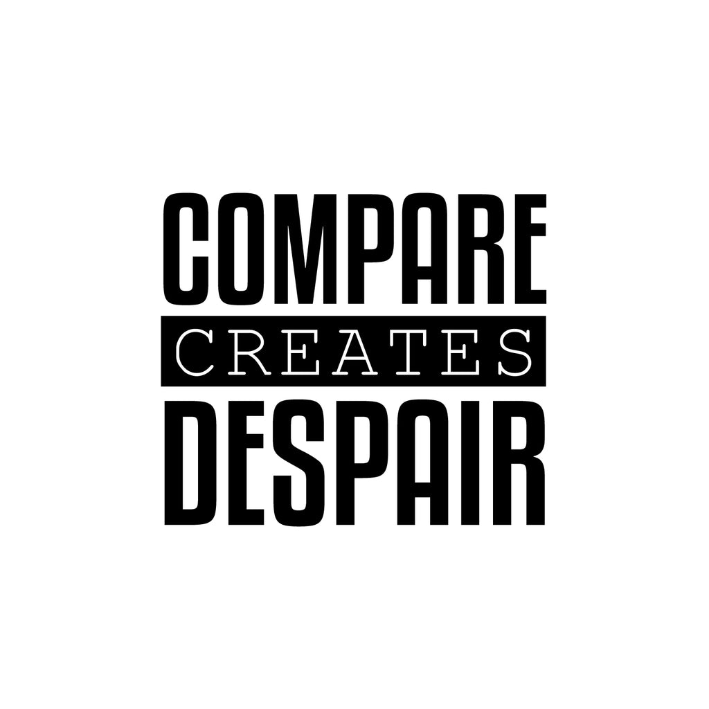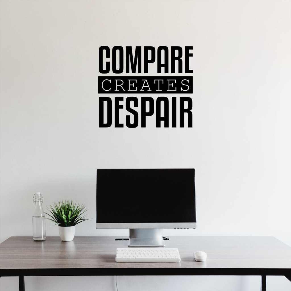 This awesome inspirational decal quote "Compare Creates Despair" is the perfect touch for your home. Use it for your living room; playroom; school or anywhere you want to bring some extra cute decoration. It's a vinyl sticker that is easy to put on any smooth and dry surface. Our modern designs don't just brighten up the room; but brighten up the day. Using top of the line vinyl across all of our production allows us to be the leaders in quality and design.