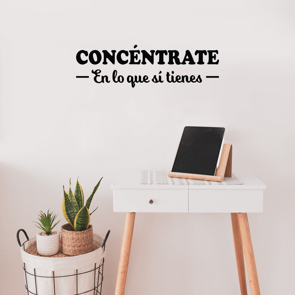This awesome positive decal quote "Concéntrate En Lo Que Si Tienes / Focus On What You Do Have"; is the perfect touch for your home or office. Use it for your business; coffee shop; bedroom or anywhere you want to bring some extra positive decoration. It's a vinyl sticker that is easy to put on any smooth and dry surface. Our modern designs don't just brighten up the room; but brighten up the day. Using top of the line vinyl across all of our production allows us to be the leaders in quality and design.